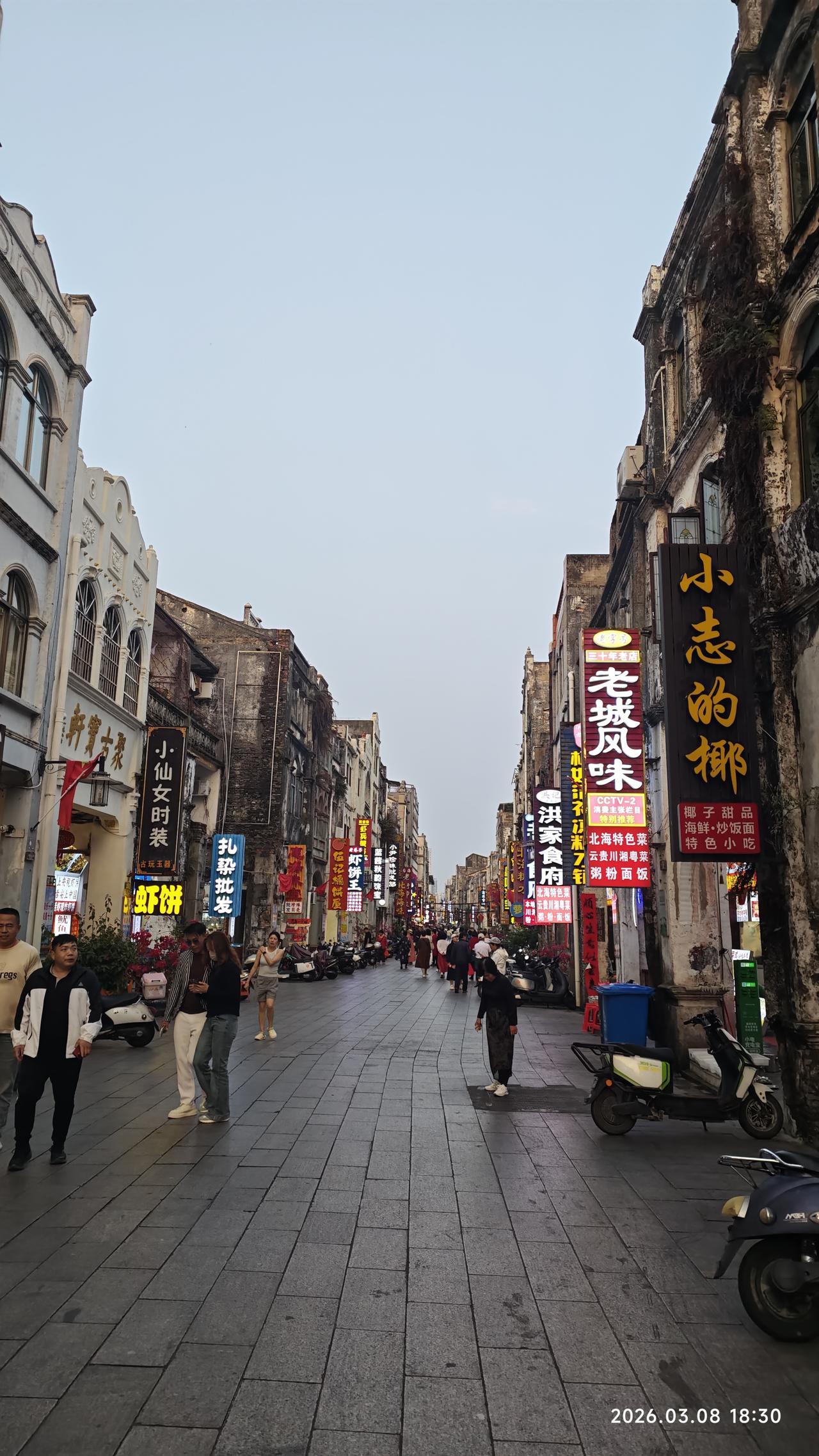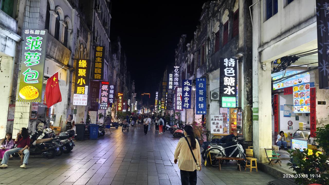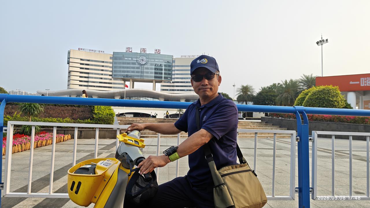 【环国行摄】第三阶段西部篇D23天总第78天:北海休整 1.路线:北海。 2.今日行驶0公里,累计公里 3.主要景点:北海银滩,北海老街 4.行程: 上午骑电瓶车到市内转悠。我们从露营地逆时针方向,先到南部海滩。路上突发奇想,在这里买一套房子也不错呀。冬天来这里避寒,夏天到乳山避暑。如果便宜的话还是可以考虑的。我们找了一家中介,正好这家是保定人开的。他领我们转了几个地方。感觉还不错。都是海景房,有一套75㎡的两居室,碧桂园的,结构也挺好看,阳台很宽,很大。看海的角度也非常好。每平米不到4000多,36万,完全可以承受啊。只是小区老一点,是那种公寓型的。但还可以。真的有点动心了。 之后骑车到了最东面的银滩。骑了好长时间。电动车不断的提醒超界了,吃午饭的时候一度都停不了车。气的够呛。 之后好不容易找到了这个银滩,看到了那个铝合金的雕塑。北海银滩东西绵延约24公里,总面积约38平方公里。据说其面积超过北戴河,青岛,大连,烟台,厦门海滨浴场的面积的总和。这里的沙子不含泥,洁白如雪,细腻如脂,松软如棉。 但我对沙滩实在不感兴趣,天下沙滩一个样。匆匆坐了一会儿,走人。临走的时候又看到一个人拿着卖房子的资料。又跟他去看了。这个是现房,一手房。本不想看,禁不住他们说,看了两套。感觉不行,周边环境不行,离海有点儿远。房价也高。能看海的都8000多。 之后继续骑电动车到火车站打卡。到北海老街。其正式名称为珠海路,是一条具有近200年历史的老街,始建于1821年,最初称为升平街,长度仅为200米,宽度为4米。随着时间的发展,老街逐渐扩展至现在的1.44公里长,9米宽,成为一条中西合璧的骑楼式商业老街。这些建筑主要受19世纪末英、法、德等国在北海建造的领事馆等西方卷柱式建筑的影响,临街两边墙面的窗顶多为卷拱结构,卷拱外沿及窗柱顶端都有雕饰线,线条流畅、工艺精美。骑楼的方形柱子粗重厚大,具有古罗马建筑的风格。 们没有走到头,都大同小异。之后在一家饭馆要了三个菜。但感觉味道很平常。怀疑是预制菜,感觉旅游区的饭菜真的不能吃。虽然不贵,但是吃了以后很不舒服。 之后我们骑电瓶车再回到露营地。 这一天匆匆忙忙的又过去了。不过北海没有留给我很好的印象。大街的路颠簸的厉害,也没有太好的风光。平常啊! 5.住宿:西海堤露营地,2026.3.8 6.路况:好 7.天气温度:晴天,14-28度