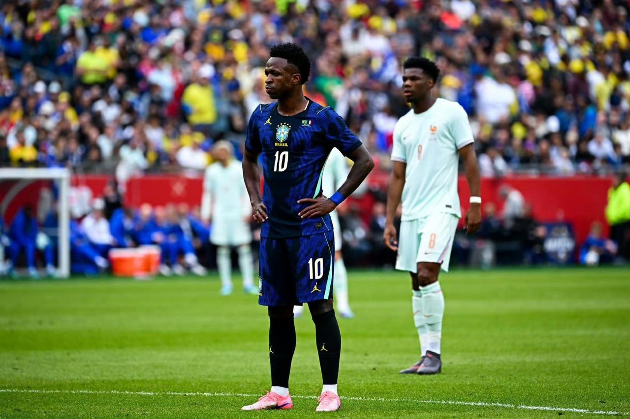 巴西1-2法国! 桑巴军团11打10倒下,队内巨星哑火! 北京时间3月27日,国际足球友谊赛,世界排名第3的法国大战第5的巴西。 两支队伍互有攻守,第31分钟登贝莱精妙直塞送助攻,高速前插的姆巴佩单刀直入禁区打进(1-0),终结能力确实极强。反观巴西表现差劲,出球能力一般,锋线队员更是状态低迷,缺乏有效的配合,他们需要有人站出来组织串联,否则很难有足够的威胁,上半场暂时0-1落后。 比赛风云突变,于帕梅卡诺禁区外犯规放倒韦斯利,主裁经过VAR介入,观看视频回放是判定为最后一名防守队员,于是出示红牌罚下,法国瞬间陷入被动,却不曾想他们10打11依旧能组织出流畅的快攻,第65分钟奥利塞直塞插上的埃基蒂克挑射破门(2-0),高效配合扩大优势。 反观巴西多打一人依旧迷失,存在的问题无法解决,主教练连续换人不见明显改善,苦苦支撑,直到第78分钟把握角球机会,布雷默近距离包抄得手(1-2),可此后他们还是没能改变结果,最终1比2落败,拥有众多巨星球员,却缺乏彼此间连接的方法。