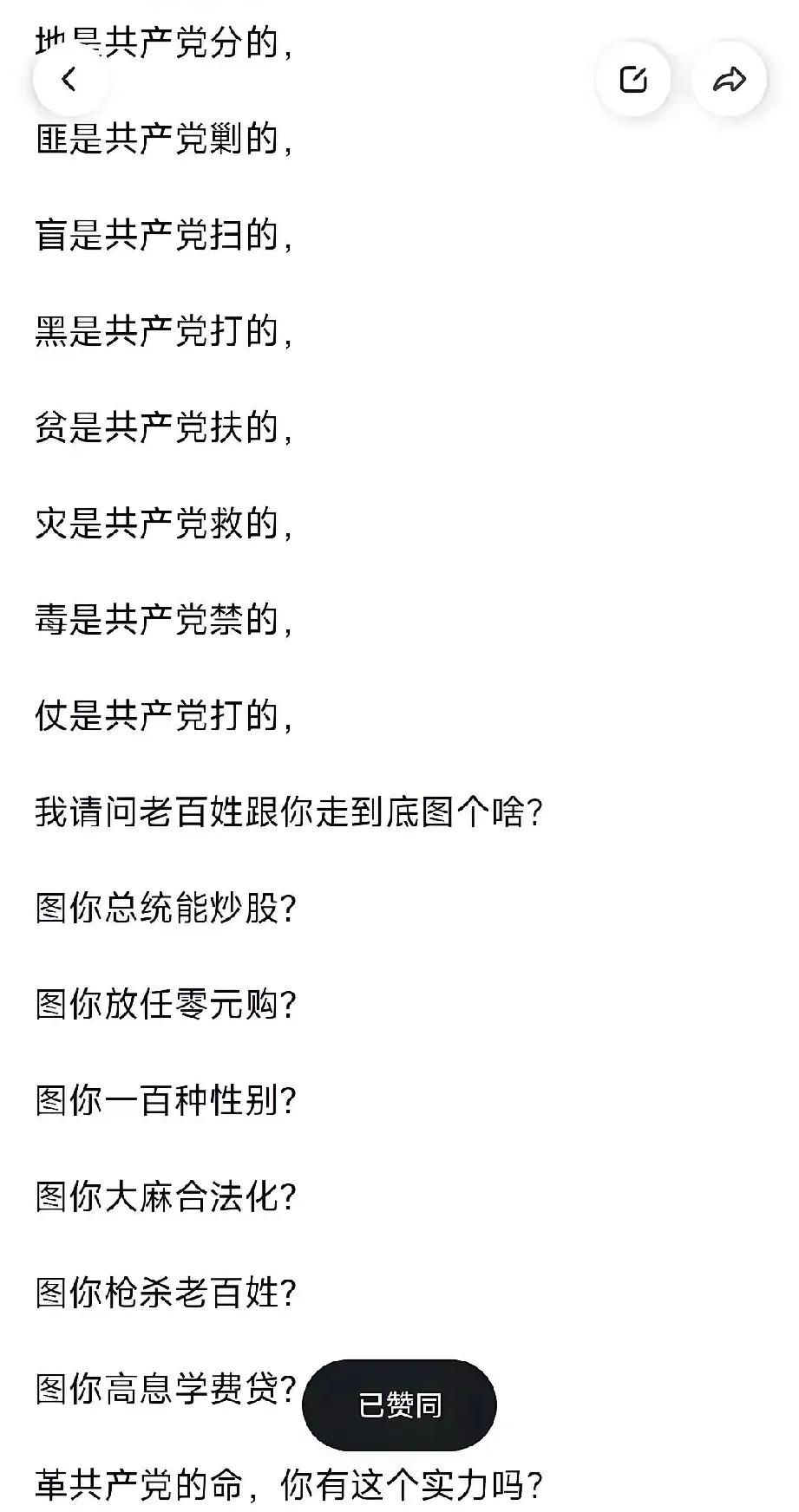 有一个头条,把 美国i在中国的颜色革命为什么大崩溃,殖人们现在为什么信念崩塌,解释得明明白白! 我是70后,上中学时2000年实现四个现代化记忆最深,当时还憧憬过,2000年时我们不仅过上了好日子,还比憧憬的更好,从一穷二白走到现在,都是共产党领导的中国带领大家实现的。 虽然现在社会还不完美,但是中国共产党是实实在在带领人民创造了美好生活!