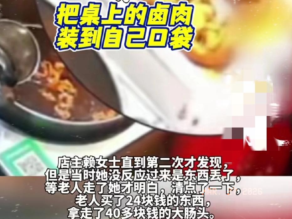 近日江苏无锡,一70岁老太太来到卤味店,买了24块钱的卤菜,谁料,就在老板娘给她盛卤菜时,她竟然做出这事! 老太太在老板娘给她盛卤菜的时候,趁老板娘没注意,直接先后两次把摊位上价值40多元的卤大肠装进了自己的袋子里去!第一次老板娘没发现,第二次的时候老板娘意识到有点不对劲,当时没反应过来!等老太太走后,自己才发现卤大肠好像少了! 现在大家生活不容易啊,这老太太素质太差了,买了24块钱的卤菜,还要趁机偷走人家40多元的卤大肠,这良心不会痛吗?偷回去的东西能吃的安心不?