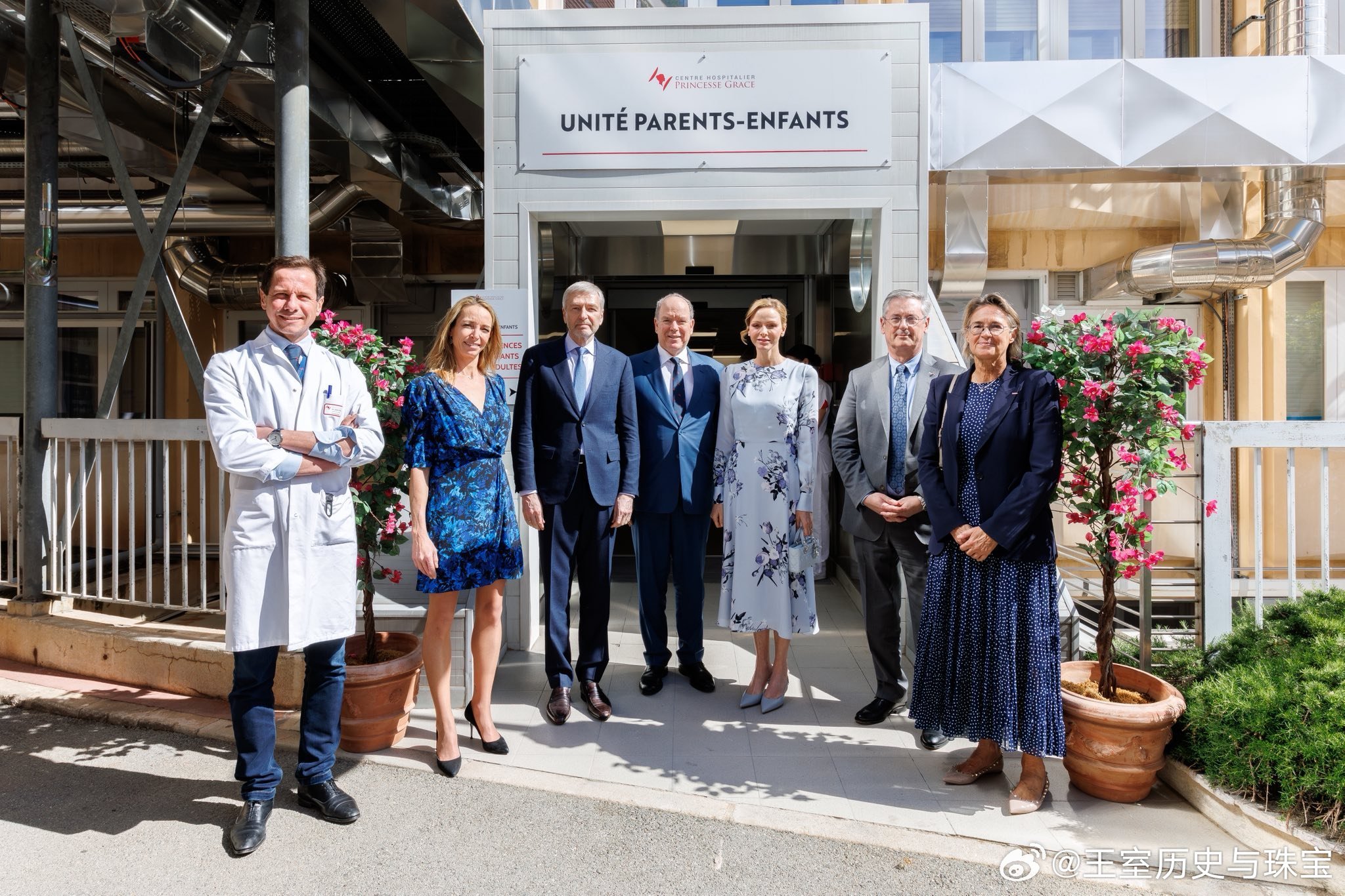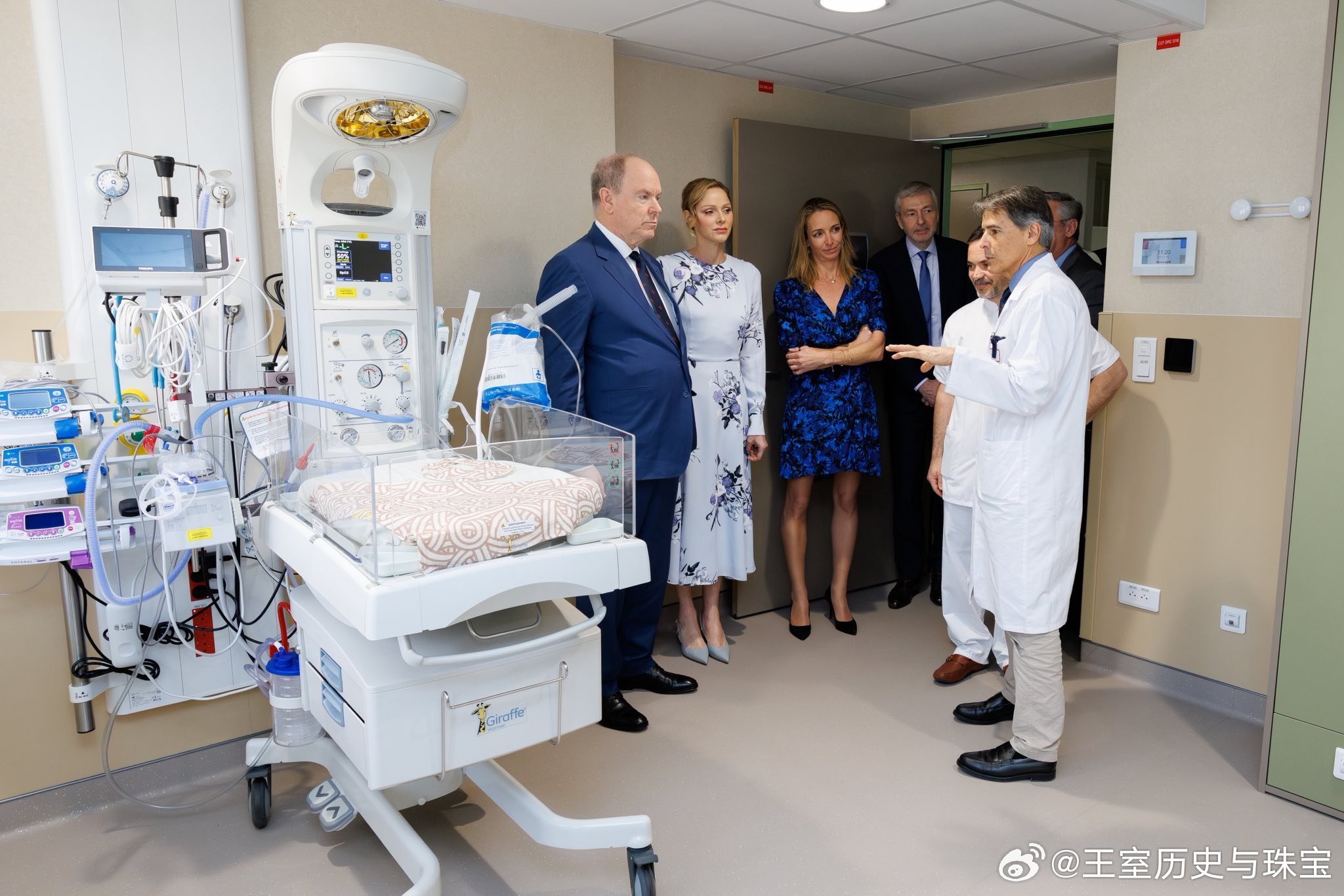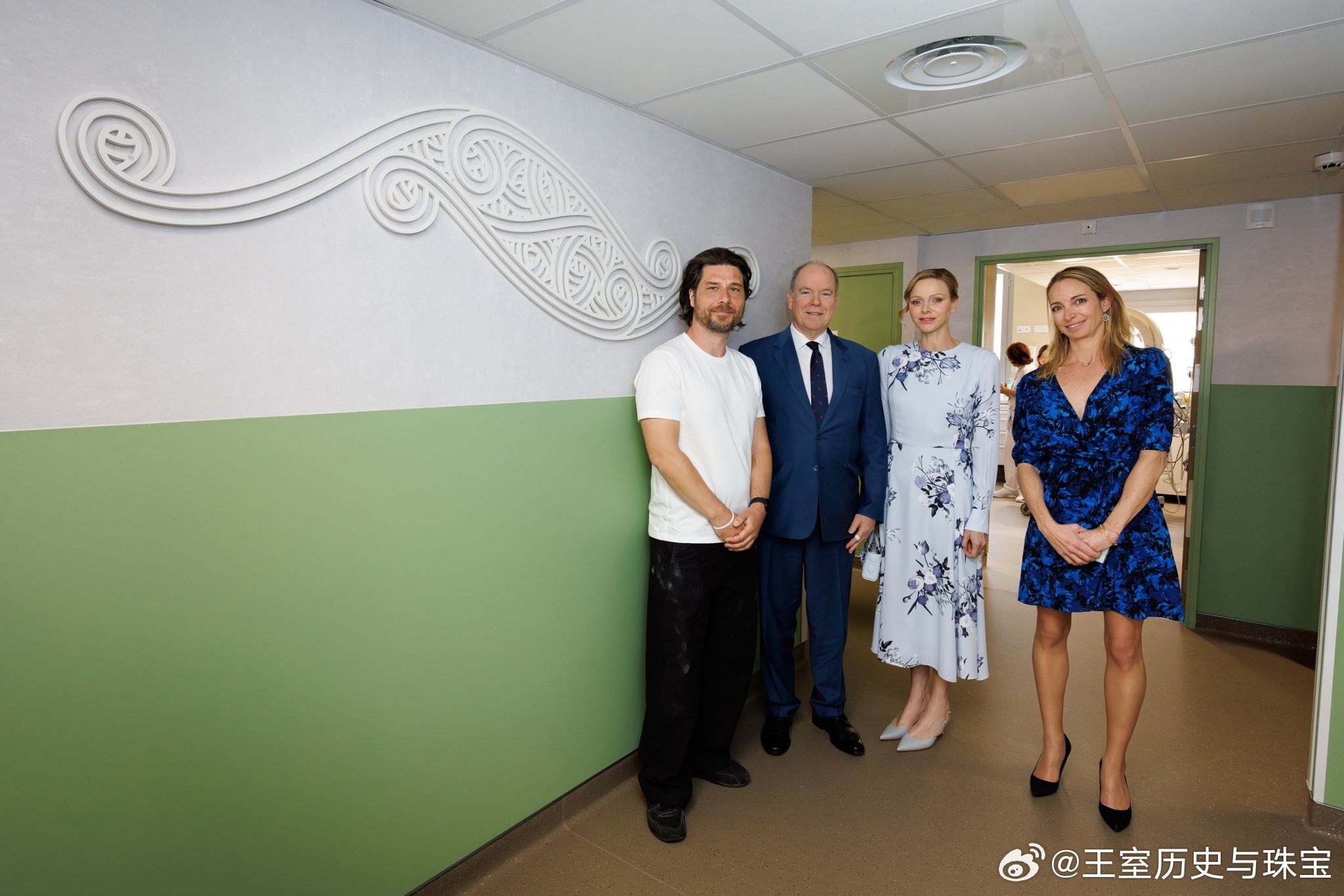 新闻 2026.3.26 摩纳哥亲王夫妇为阿尔伯特亲王和夏琳王妃为格蕾丝王妃医院新落成的亲子病房揭幕,查伦妮的温柔印花裙来自Erdem。