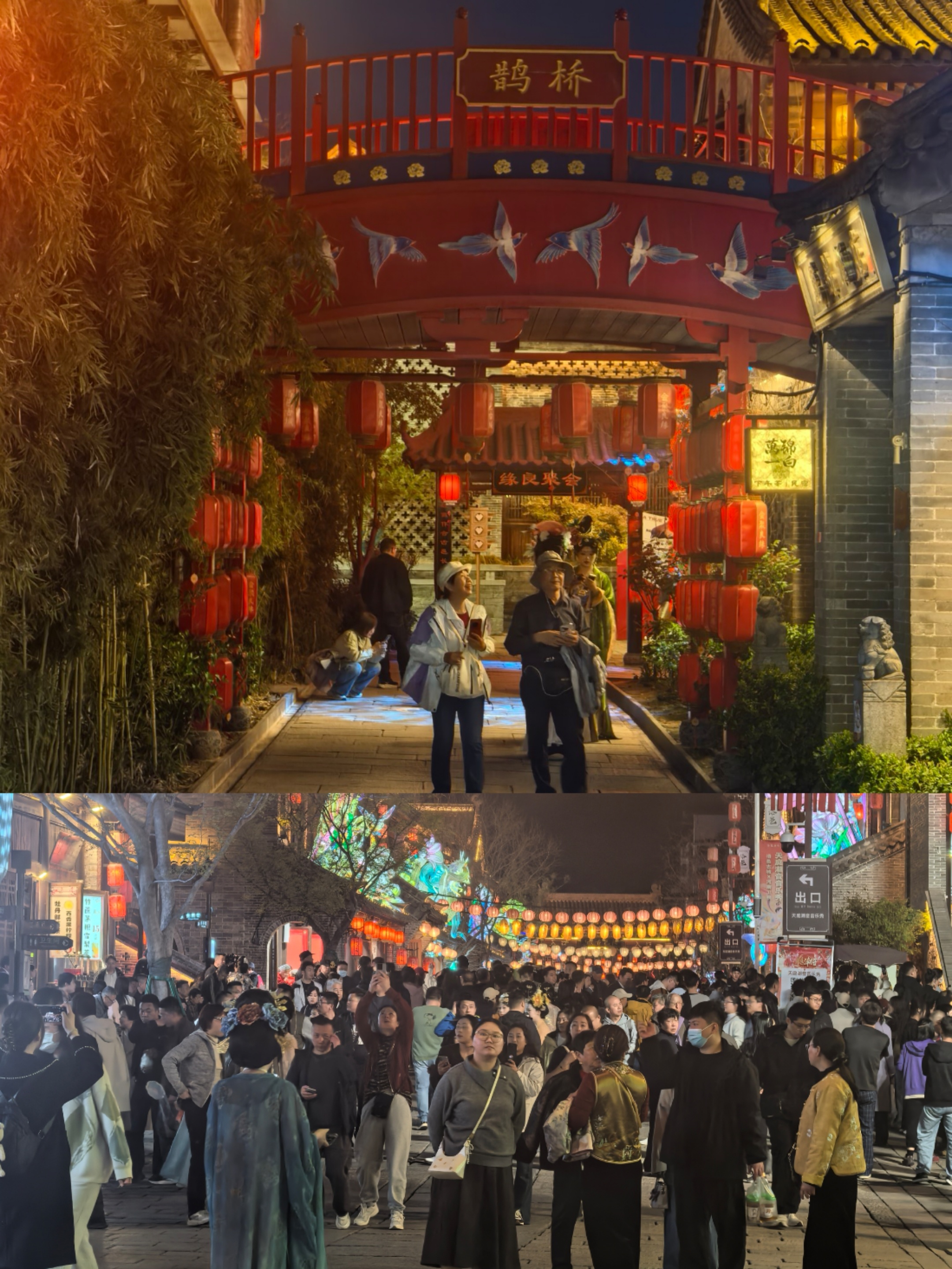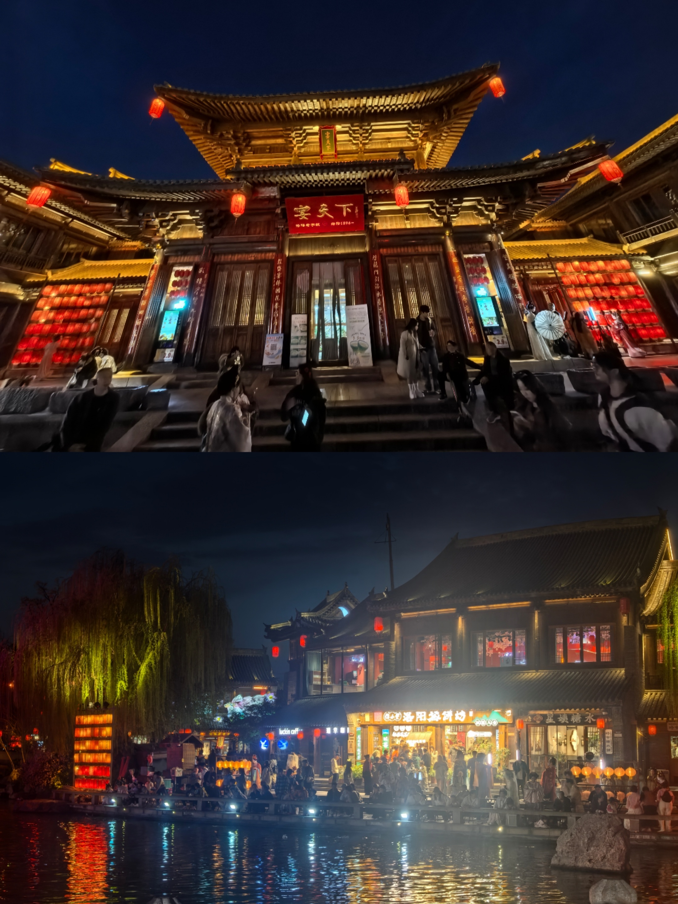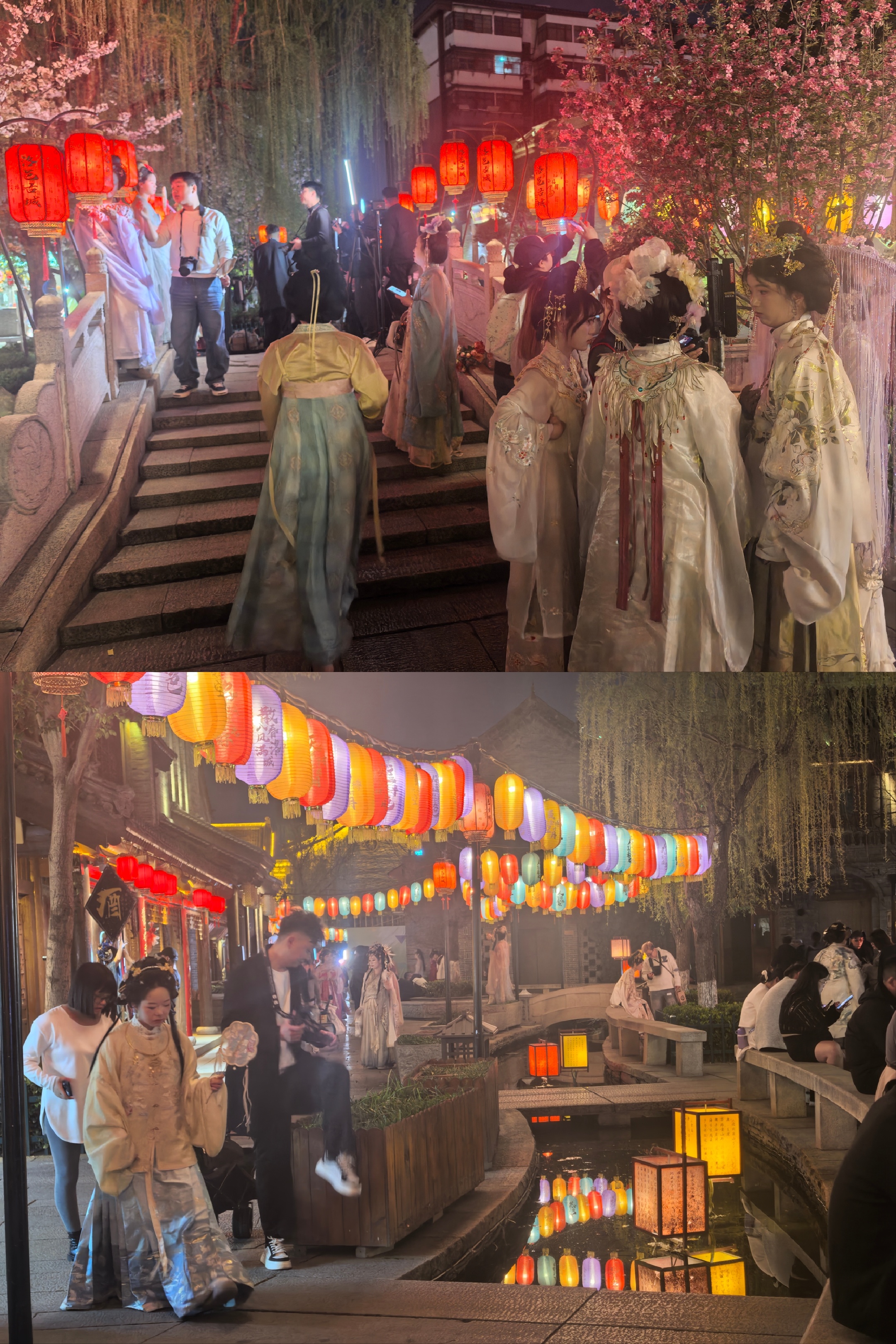 漫步洛邑古城,走在青石板路,四周挂满非遗宫灯、红灯笼与祈福带,沿街的汉服妆造店灯火通明,当现代游人成了古韵佳人,这般“入古”的沉浸感,让初入古城的我,竟真有几分恍惚,不知今夕是何年。
