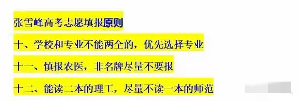 张雪峰12条志愿铁律成绝响!最后3条颠覆认知,2026考生家长赶紧存 最近张雪峰志愿铁律刷爆全网,被无数家长称为人间清醒,尤其是最后3条,直接戳破96%家长的误区,句句大实话,不玩虚的,全是为普通家庭孩子铺路!2026届高考生和家长,这条一定要收藏转发,别等填错志愿再后悔! 很多家长填志愿,总盯着名校光环、热门虚名,要么盲目冲985、211,要么跟风选网红专业,根本不考虑孩子未来就业。张雪峰这12条铁律,没有鸡汤,全是落地干货,围绕好就业、稳收入、不踩坑,帮无数家庭避开天坑,堪称志愿填报的保命指南。 前9条里,他反复强调:生化环材慎选,不读硕博别碰;能选省会不选地级市;专业比学校重要;冲稳保比例要科学;不服从调剂避开大坑;艺术专业费钱看天赋;医学法学苦熬年限;普通家庭优先技术岗和体制岗。每一条都扎心又真实,看透当下就业现状。 真正颠覆认知的,是最后3条绝响铁律,很多家长看完直呼:原来这么多年都填错了! 第一条:普通院校农医类,慎报! 不是看不起农医,是现实太残酷。学制长、投入大、回本慢,普通二本、三本的农医专业,就业难、薪资低,家里没资源没背景,孩子很难熬出头。想学医,至少一本起步,想学农,要么名校要么家里有产业,普通孩子别拿青春赌明天。 第二条:二本理工>一本师范 现在师范卷到离谱,普通一本师范考编比登天还难,几百人抢一个岗位,没背景没运气很难上岸。反观二本理工科,有实打实的技术傍身,电气、计算机、机械、新能源,毕业就能进厂进企业,薪资稳定,越老越吃香,不用挤破头考编。 第三条:慎选新潮虚头专业,优先传统刚需 AI、大数据看着高大上,普通院校师资跟不上,学完半吊子,毕业即失业。反而是计算机、电气、会计、护理这些传统刚需专业,就业面广,不愁没工作,踏踏实实过日子比啥都强。 2026高考志愿大变天,AI新工科、低空经济、新能源火爆,但越是热门越要冷静。张雪峰的话糙理不糙,志愿不是选兴趣,是选孩子未来十年的饭碗!普通家庭没有试错成本,一步错步步错,别让一时糊涂,耽误孩子一生。 真心建议所有家长,别再被网红专业忽悠,别盲目追求名校虚名,结合孩子分数和家庭条件,选对专业比啥都重要。这12条铁律,赶紧截图保存,填志愿时拿出来对照,少走十年弯路! 2026高考 志愿填报 张雪峰 高考志愿避坑 家长必读 互动话题:你家孩子更倾向选师范还是理工?评论区聊聊