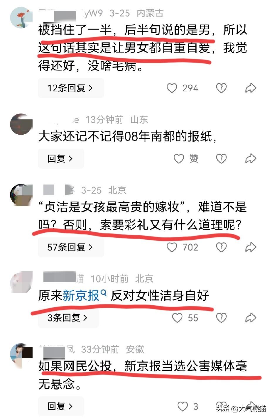 看了关于四川公交车标语报道的评论区,证明大多数的网友还是有理性的,至少没有被西方的所谓价值观而洗脑,贞洁对于女孩如此重要,对于男孩也是如此重要,难道不对吗?报道为什么只截取前半句,而故意把后半句丢掉,到底这样做到底是何目的,确实应该要说清楚!