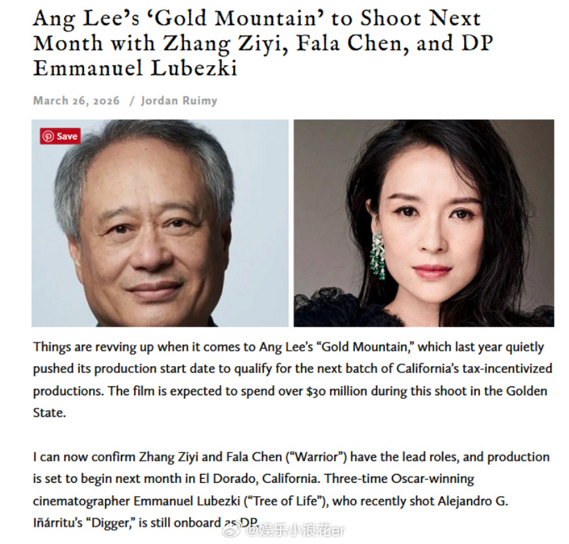 李安的新电影《老金山》下个月开机。外媒报道章子怡担任主演。距离《卧虎藏龙》已经过