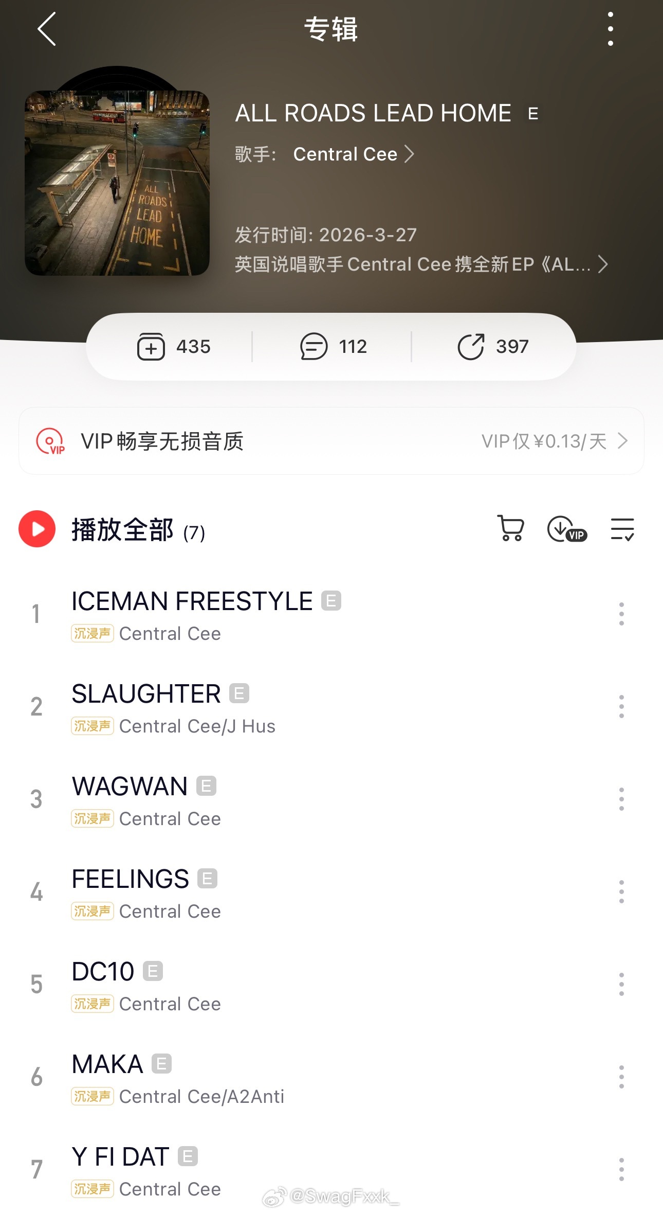 Central Cee新 EP《ALL ROADS LEAD HOME》发布!你