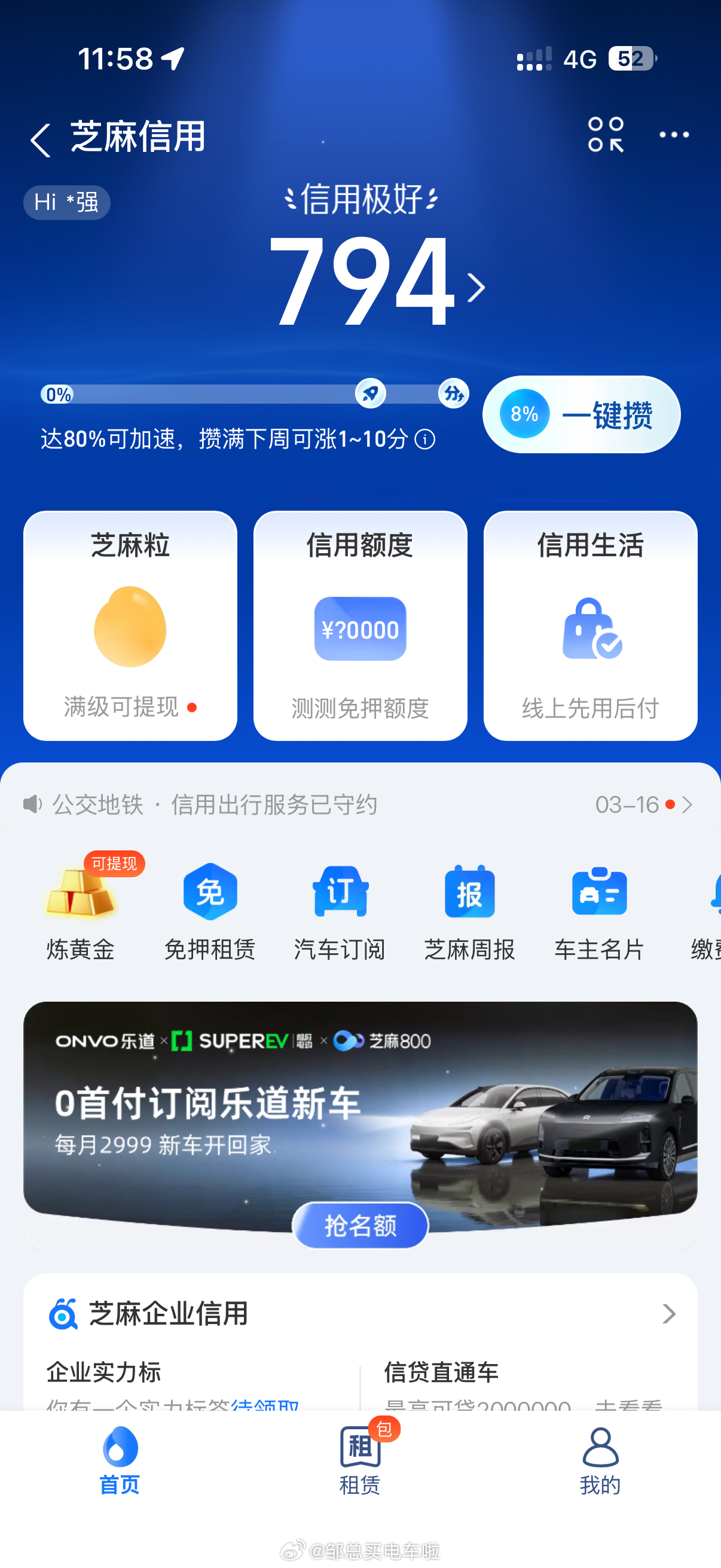 享受该订阅服务仅有一个要求,就是芝麻分800及以上。我一看我还差6分……不然我也冲,继续攒分!