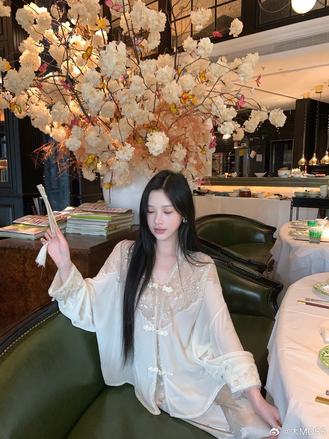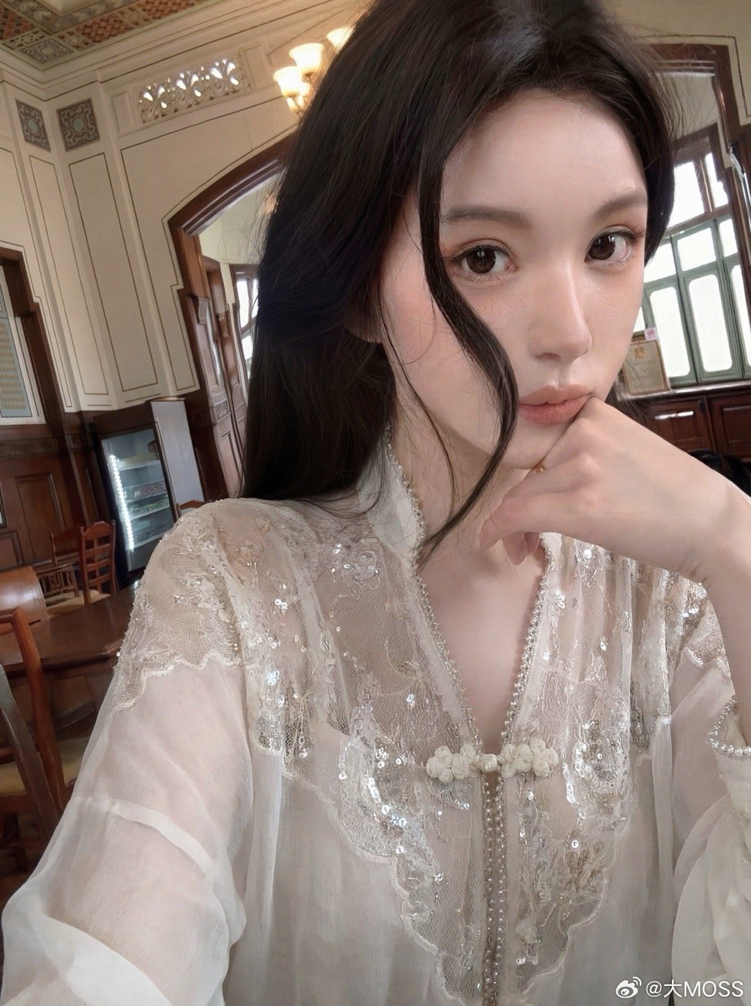 𝑴𝑶𝑺𝑺 𝟑.𝟑𝟎/𝟐𝟎:𝟎𝟎𝒑𝒎【南鸢若尘】🤍🤍新中式重工珠绣蕾丝拼接丝绒衬衫衣服衣身垂坠感极佳,肩线设计自然舒展肩颈,拼接了同色系重工亮片蕾丝,门襟银边水钻珠网纱夹边条强化了轮廓的精致感,与衣领绣纱形成统一韵律。新中式
