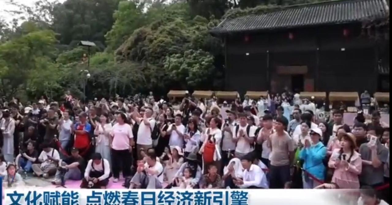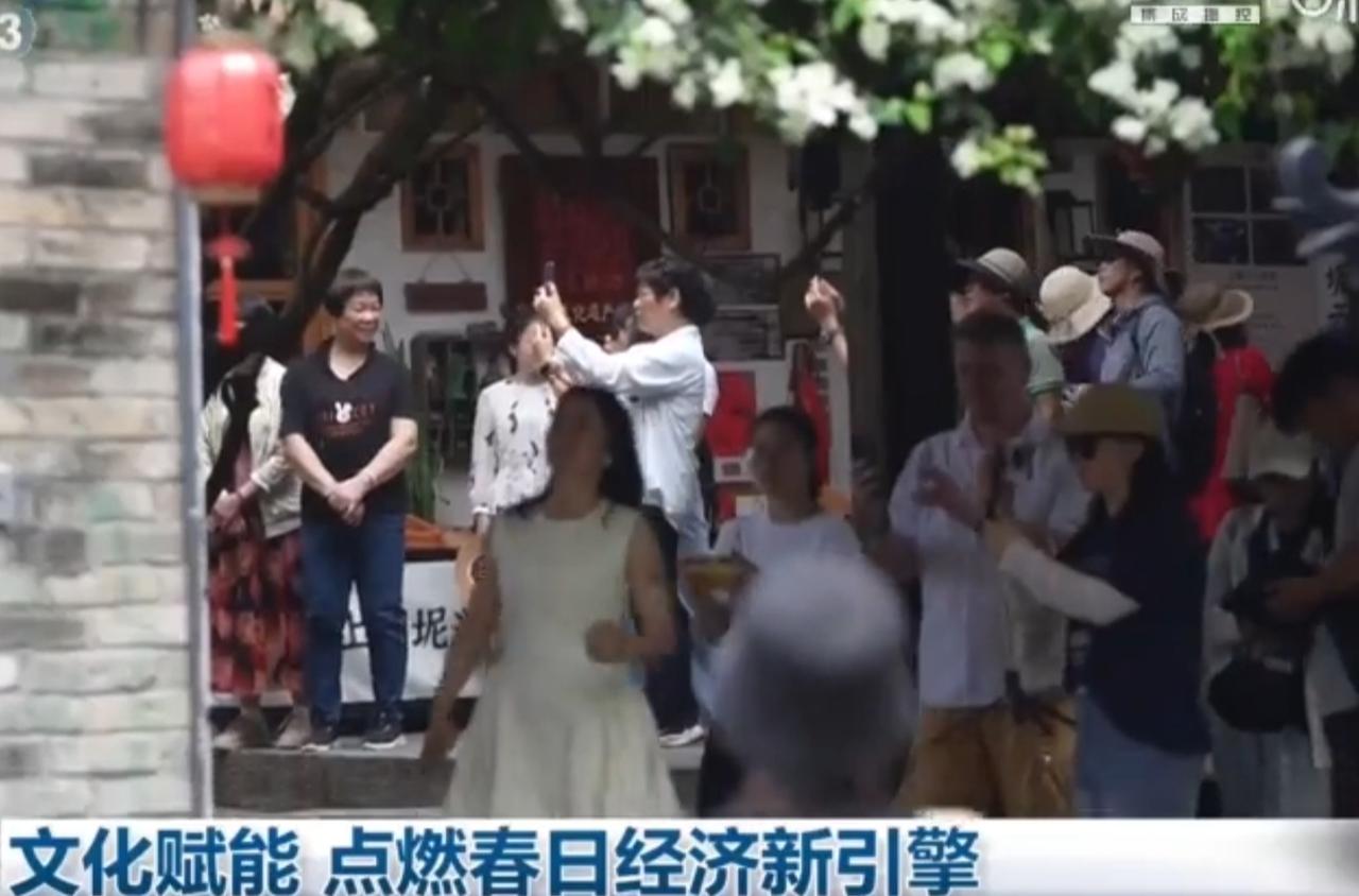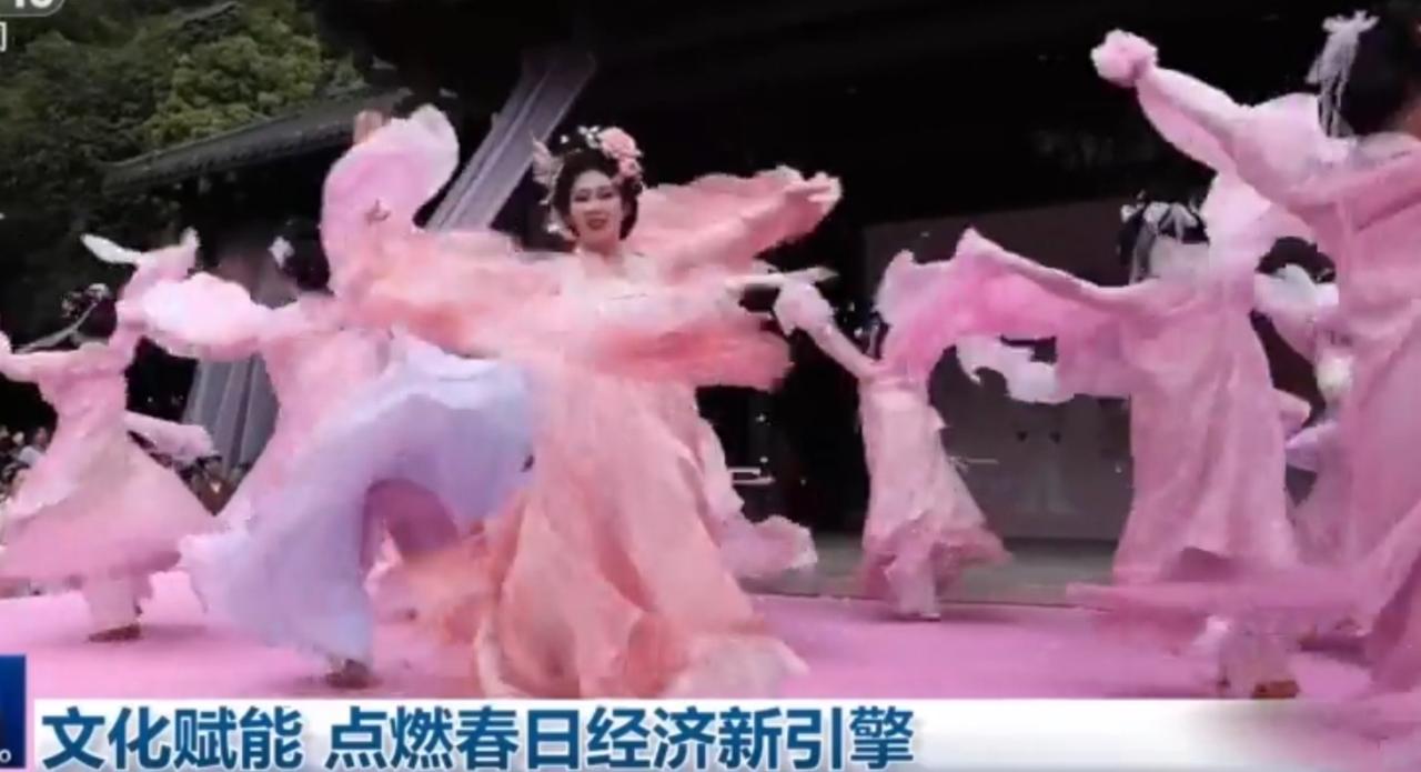 春日文旅活动热闹非凡,身着粉裙的舞者翩翩起舞,衣袂翩跹如繁花绽放,尽显古典韵味。现场人头攒动,游客纷纷驻足观赏、拍照打卡,沉浸式感受传统文化魅力。繁花掩映古街,文旅融合焕新,以文化赋能点燃春日经济新引擎,让传统之美与时代活力交相辉映。
