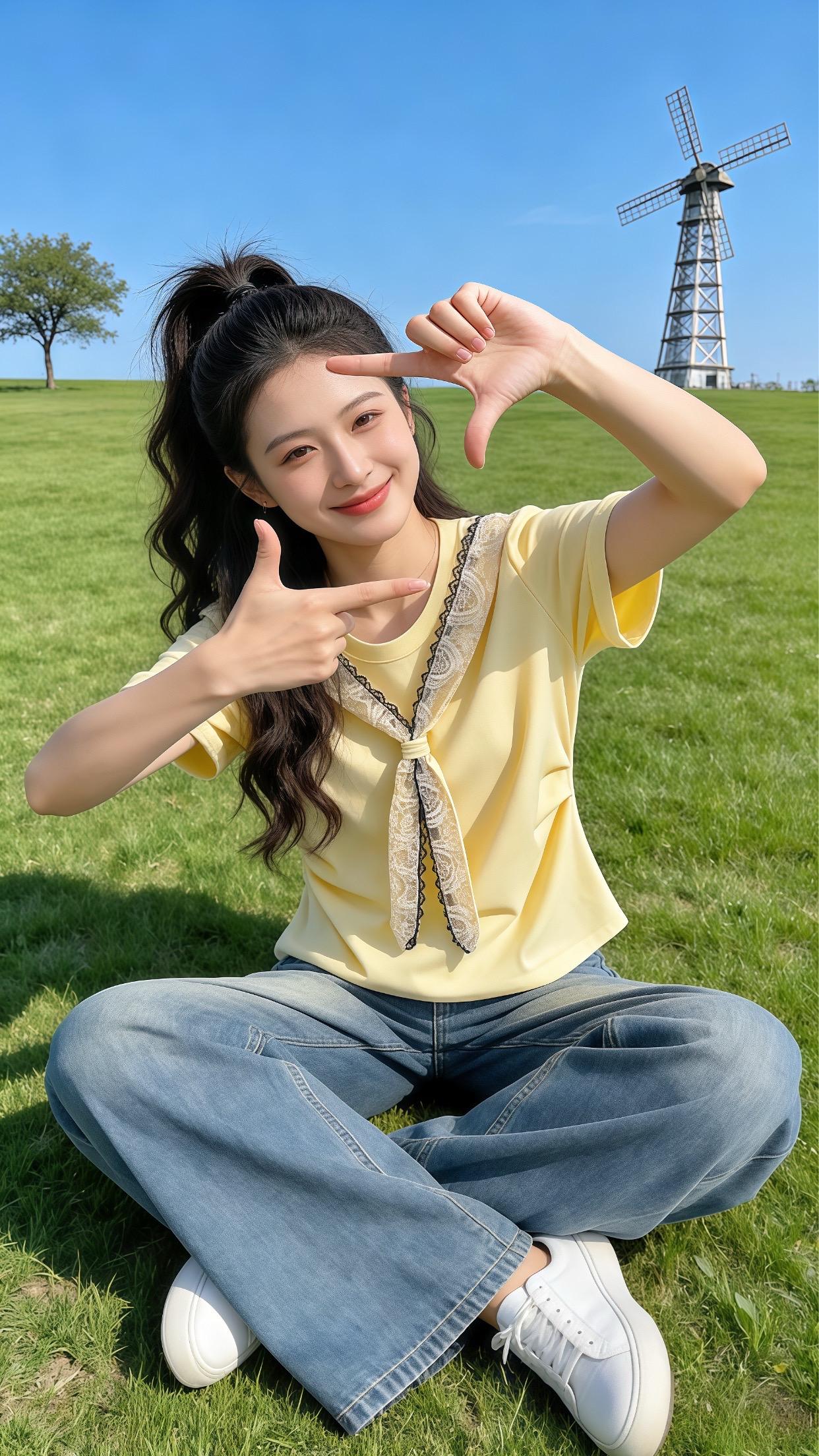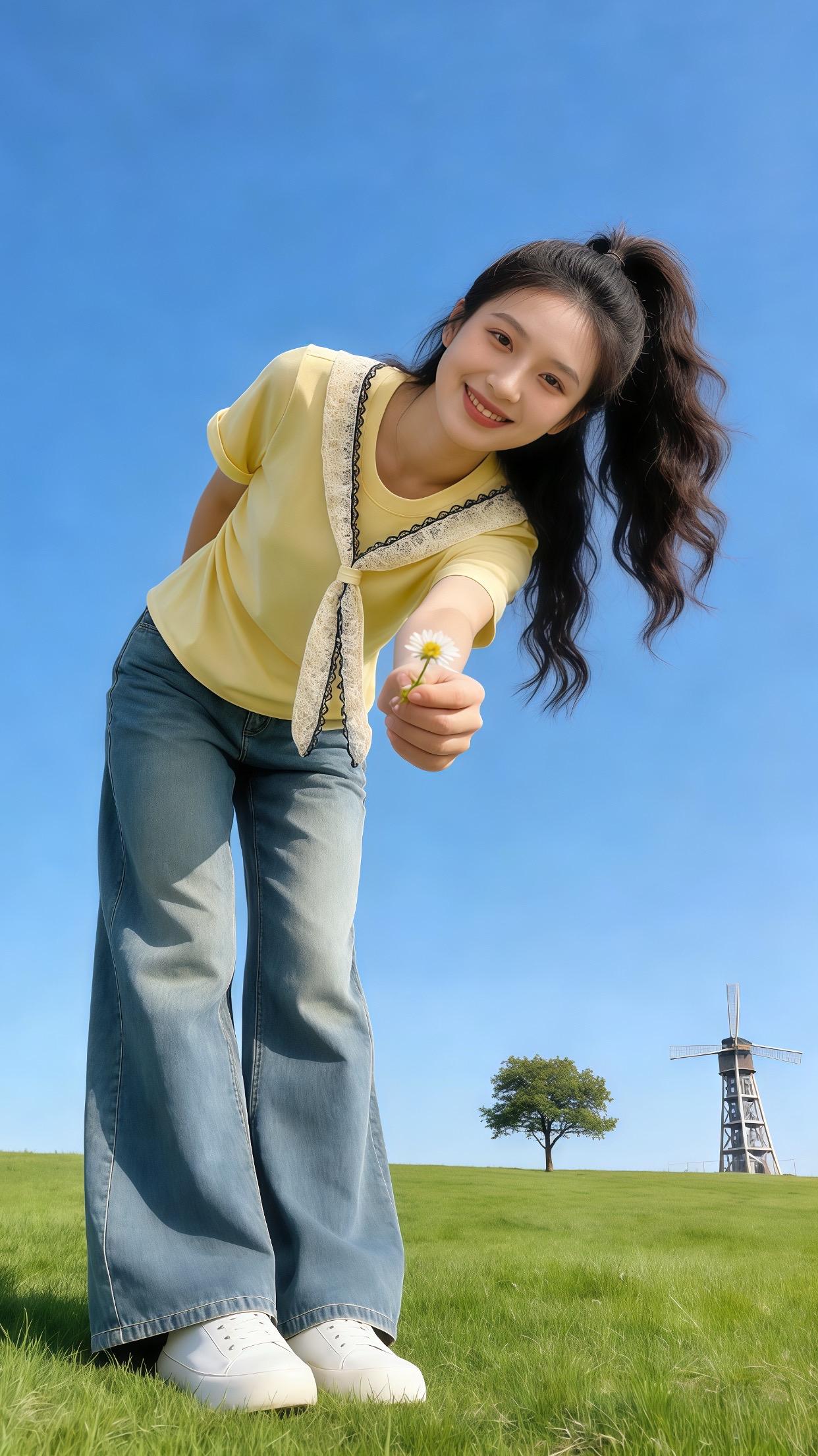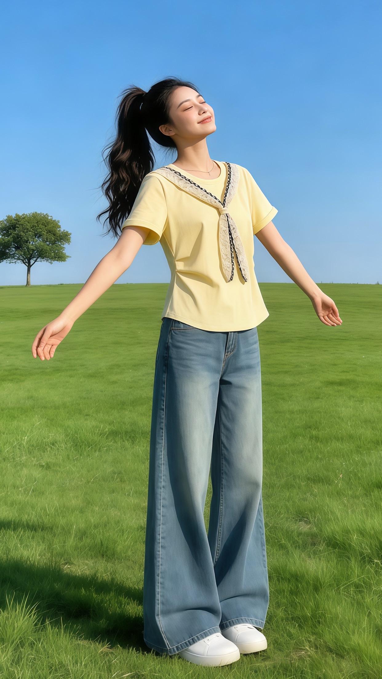时尚穿搭指南:牛仔喇叭裤+露肩上衣,搭配白色小包,轻松出街!穿搭