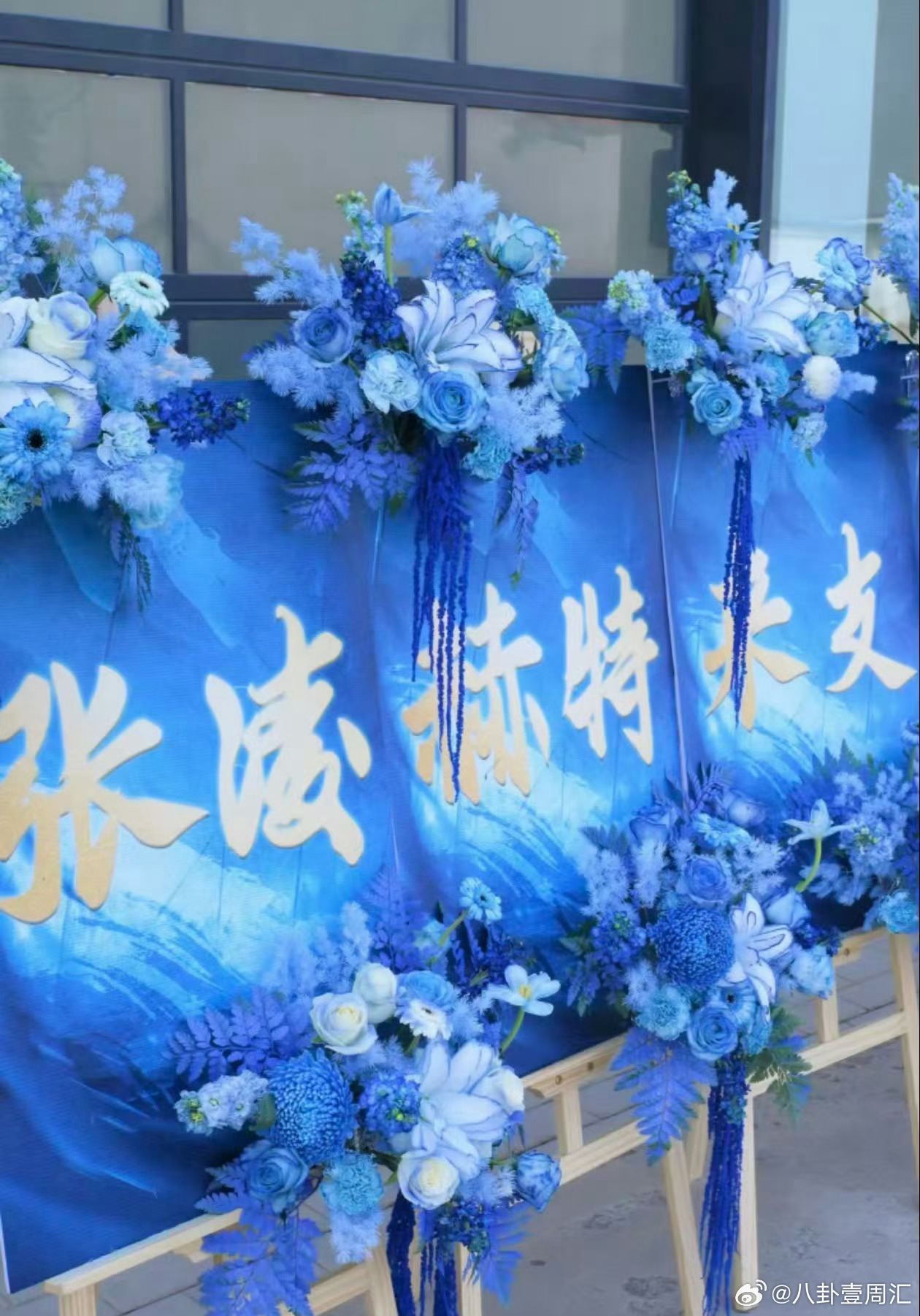 张凌赫送张杰花篮太暖心!蓝花+贺卡“支持杰哥天下”,一排陈列成“侯爷排面”,双张