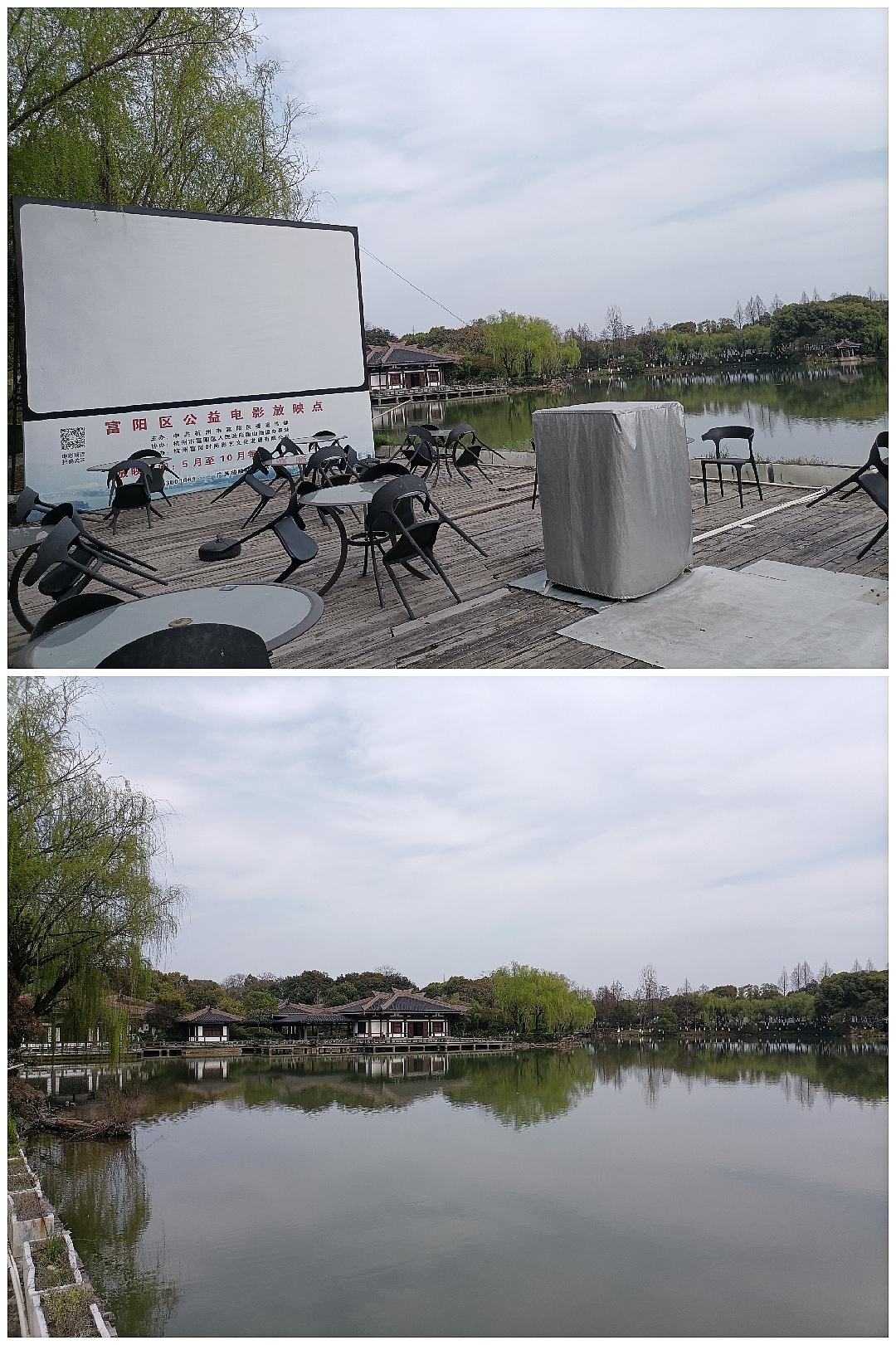 没想到富阳东吴文化公园,如此精致、瑰丽、古风。入口处,如古代军营的瞭望台(图1上),公园大门如古代城门(图1中.下),入园豁然开朗,杨柳树下静若镜面的湖水,映衬着对岸楼台亭阁的倒影美不胜收(图2-了),绿影中的山顶楼阁更显江山如此多娇(图4)! 赞叹富阳固定的露天电影(图5上),5月份后每天放映,杭州主城区要努力了!湖光山色,美艳动人大概形容的就是这个样子吧(图5下-7)!三圣殿、创业开基殿、泽惠东南殿,孙权家族的三豪杰(图8-9),大殿后花园同样精美绝伦(图10-12)。沿湖一圈漫步,不同角度的山水美景(图13-14)。 出园了,打车去富阳博物馆(富春山馆)(图15),有三个展馆 组成,其中博物馆展品大多以富阳当地过去生活场景为多,动物标本场景组合还是蛮有特点的,展馆没有先后顺序,乌漆抹黑转圈路路通,出口指示不明确,兜了三圈差点迷路走不出来,另两个展馆转累了也就没心思看了。 富阳 公园 美出高级感 旅行 原创