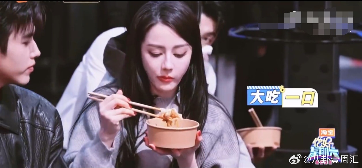 热巴吃粉条故意“馋”飞宇,结尾还啃葱油饼,俩人分一块太甜了~迪丽热巴陈飞宇吃同一块葱油饼你好星期六