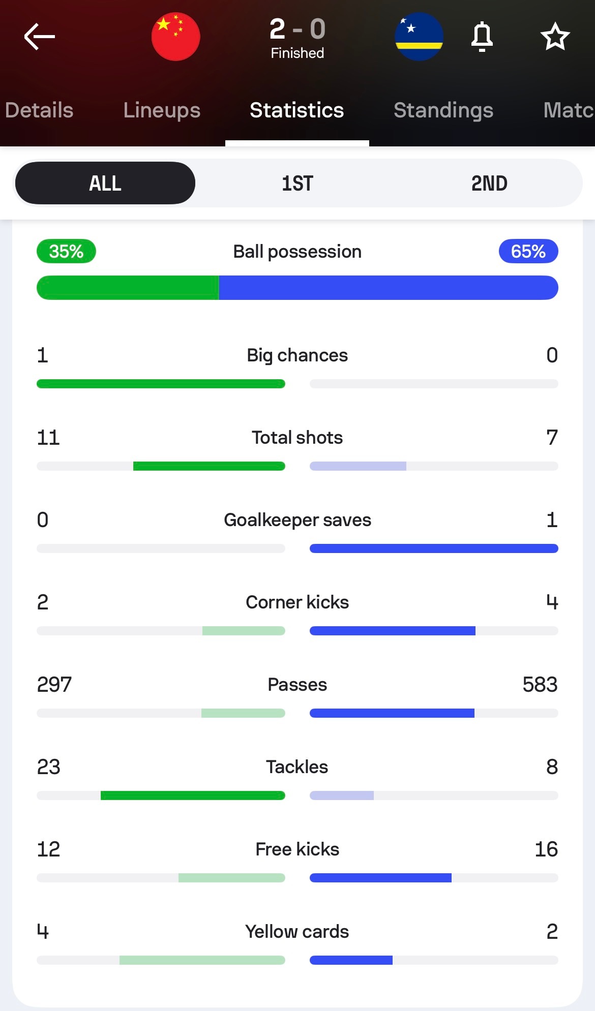 国足vs库拉索 全场技术统计,对手零射正!国足2比0库拉索 FIFA系列赛