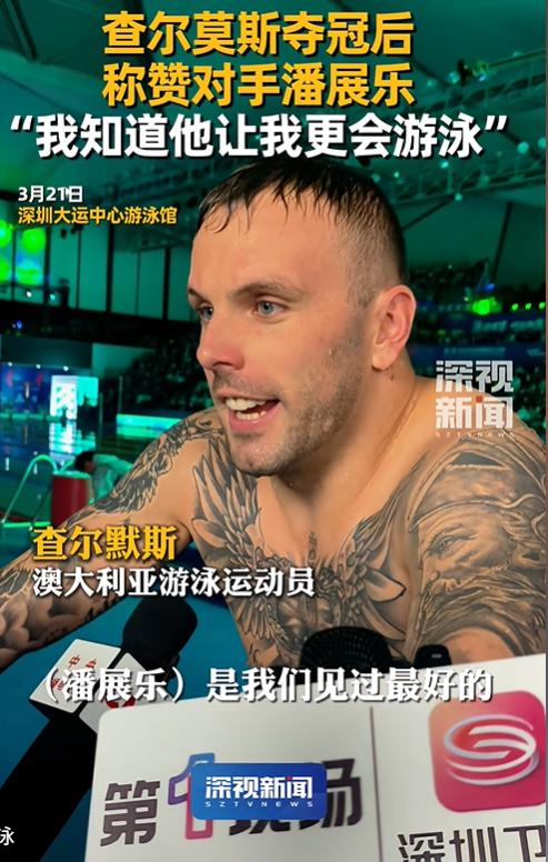 太逗了,还记得当年潘展乐在央妈面前告状,查尔莫斯就从他背后路过,还呲个大白牙在那乐! 网友说这就是吃了不会中文的亏,错过最佳公关时间! 记得有个老外的评论,打招呼又不会影响排名,况且别人也不会觊觎你的银牌,得得得,老外还是会怼自己人的。 不过一次沉默变成了终身的主动,查尔莫斯现在见到潘展乐就主动上前打招呼,比赛场上教练,队友都不管了,专门来和潘展乐击掌,有时还和潘展乐勾肩搭背,甚至在领奖的时候都要和潘展乐打了招呼才安心。在比赛后采访更是夸赞潘展乐是他见过男子100米最优秀的运动员 估计在查尔莫斯眼里,一个男孩很喜欢他,但是他没理对方导致对方很受伤,他也很愧疚吧!