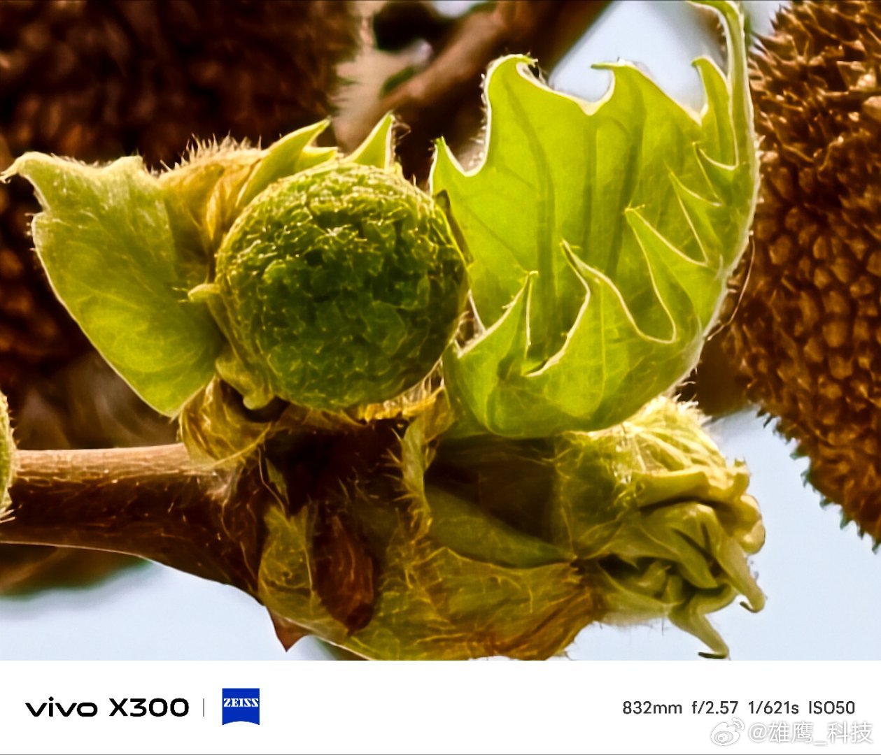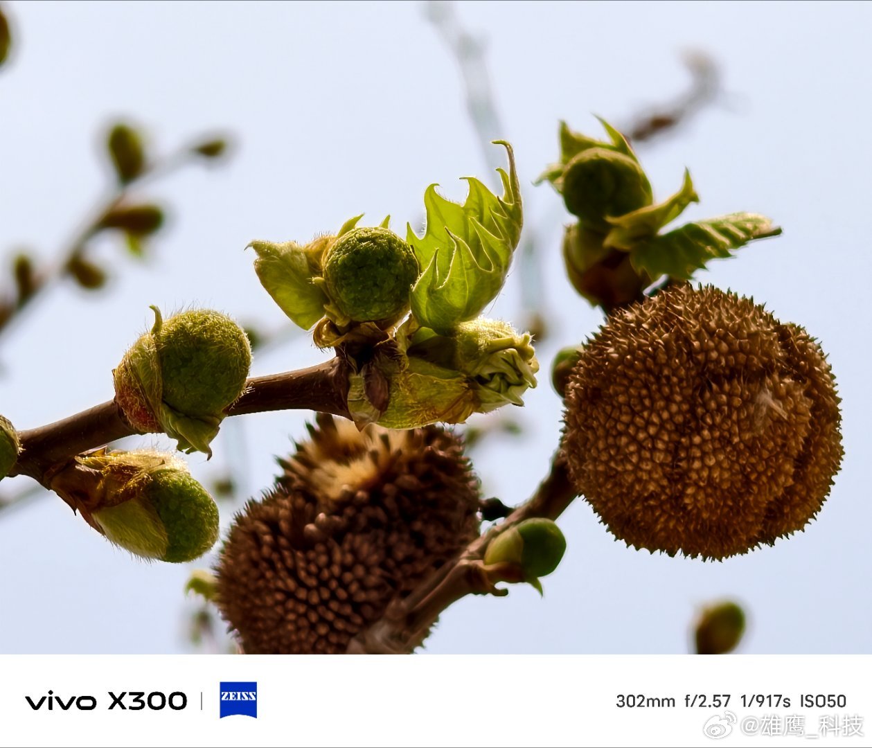 vivo 旧果还挂在枝桠,新绿已悄悄探出头。嫩叶片蜷成精致的褶皱,圆滚滚的果球与