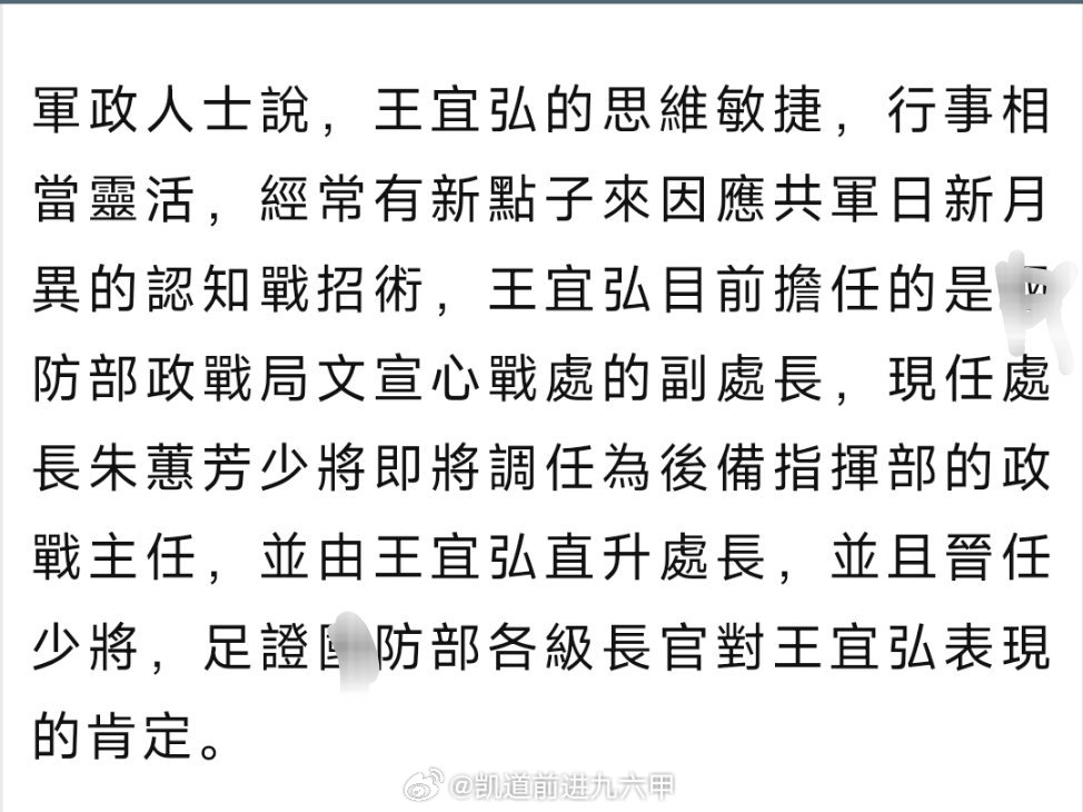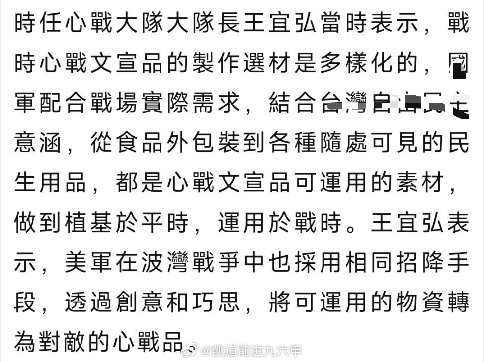 台海局势 在大陆笑话界名气颇高的「心戰投誠食品」作者,时任心战大队长的王宜弘上校被赖清德授予少将军衔,接任蛙防部政战局文宣心战处长🤣
