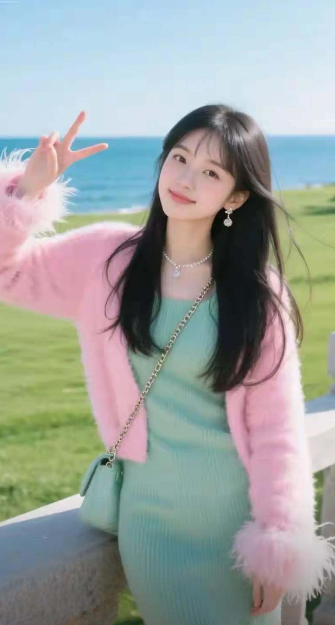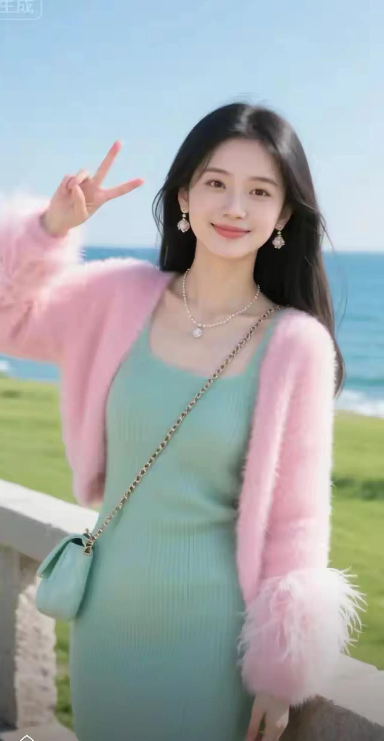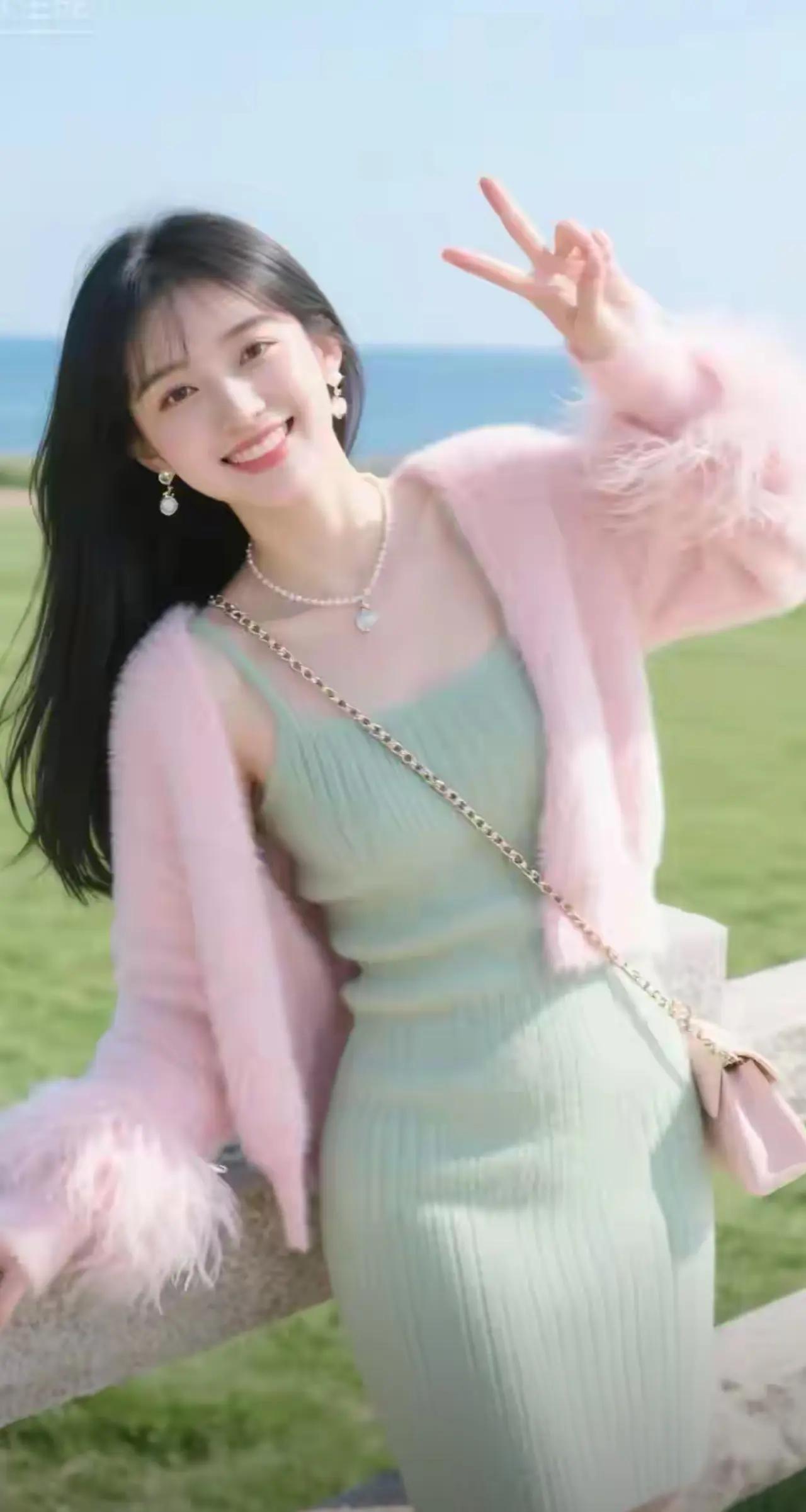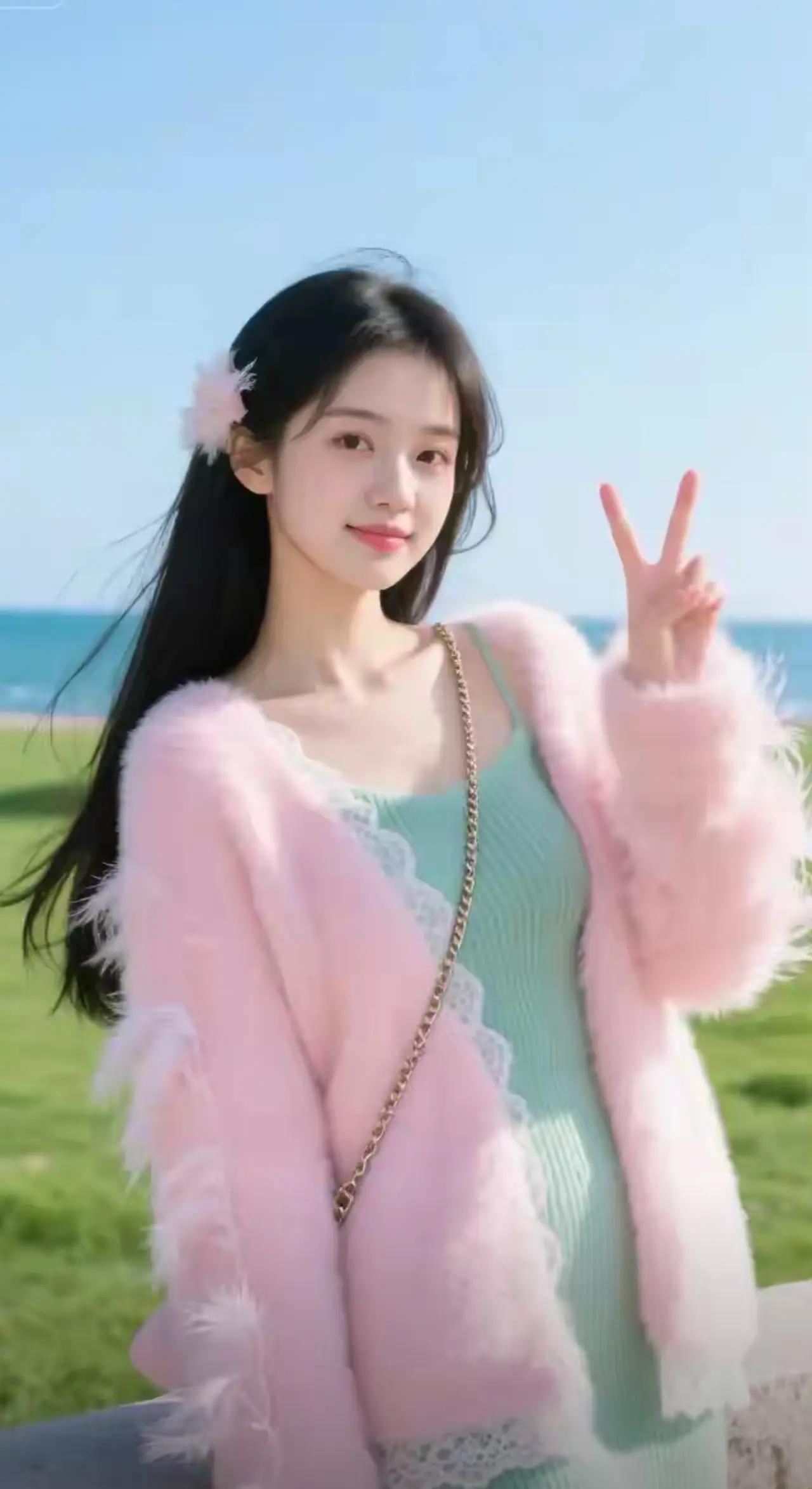 青春洋溢的小女孩,粉色外套搭配白色T恤,活力满满!🌟👧👕👖