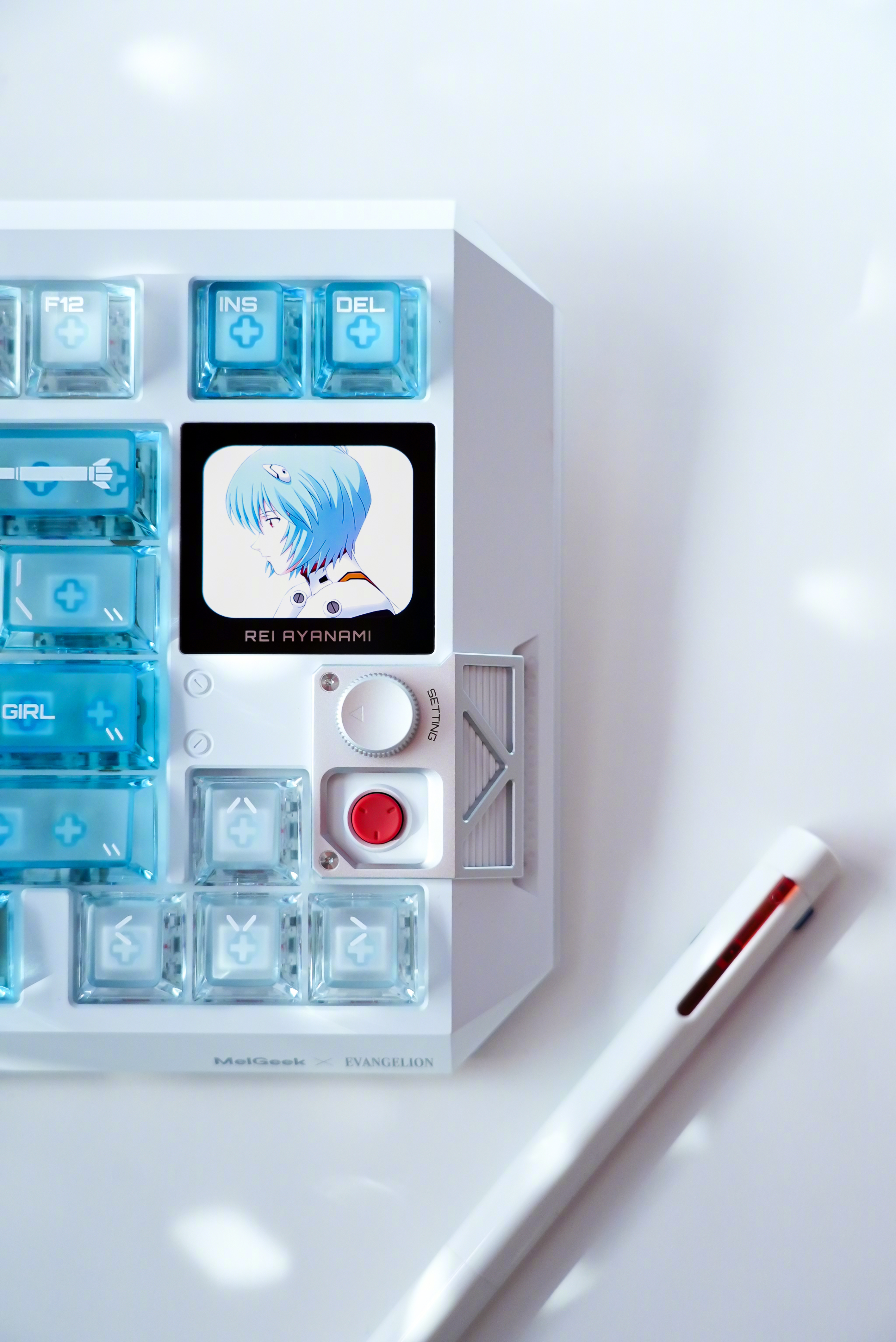 第一次用磁轴,手感好妙!键程很稳、空隙感也少,敲起来真好听啊,不闷也不吵,属于同事友好型选手。MelGeek奇点80这个联名版的细节尤其用心,从配色到右边一个高分辨率的小屏幕都在呼应,开机自带三张绫波丽✨