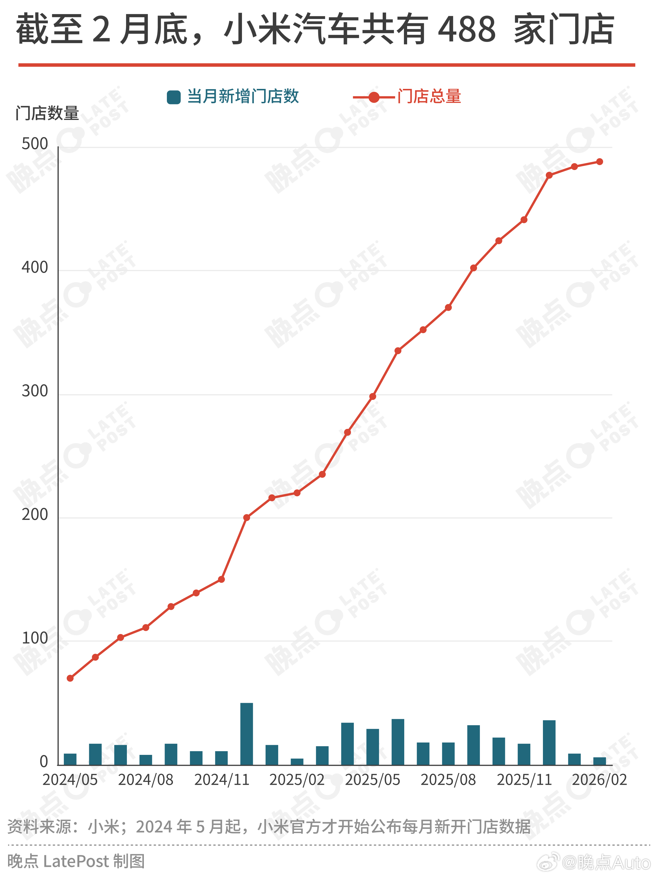 38 万辆换来了一套更完整的能力。小米北京亦庄一期、二期工厂合计规划年产能 30 万辆,新款 SU7 上市前两个月开始备产,现在是锁单后最快一周提车(定制车型交付需要 3 个月左右)。全国门店已经增加到 492 家、其中 163 家是直营。知情人士告诉我们从门头到装修看不出直营和经销商门店的区别,开直营店核心目的是掌握车辆交付以维持市场价格稳定。