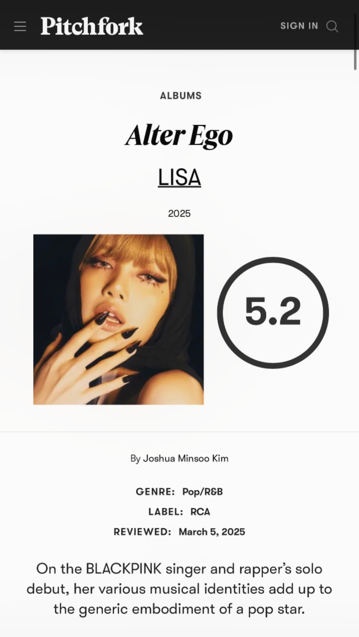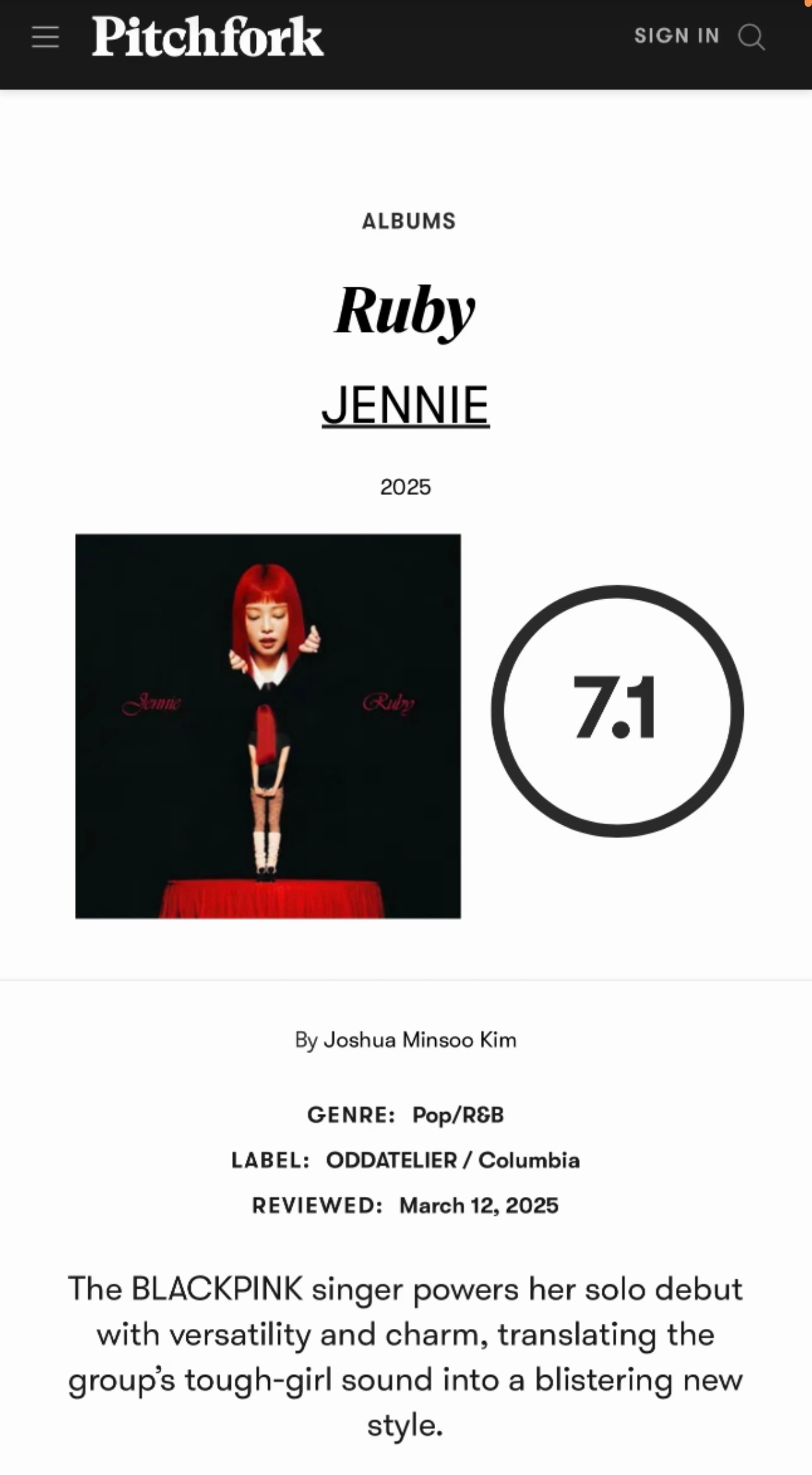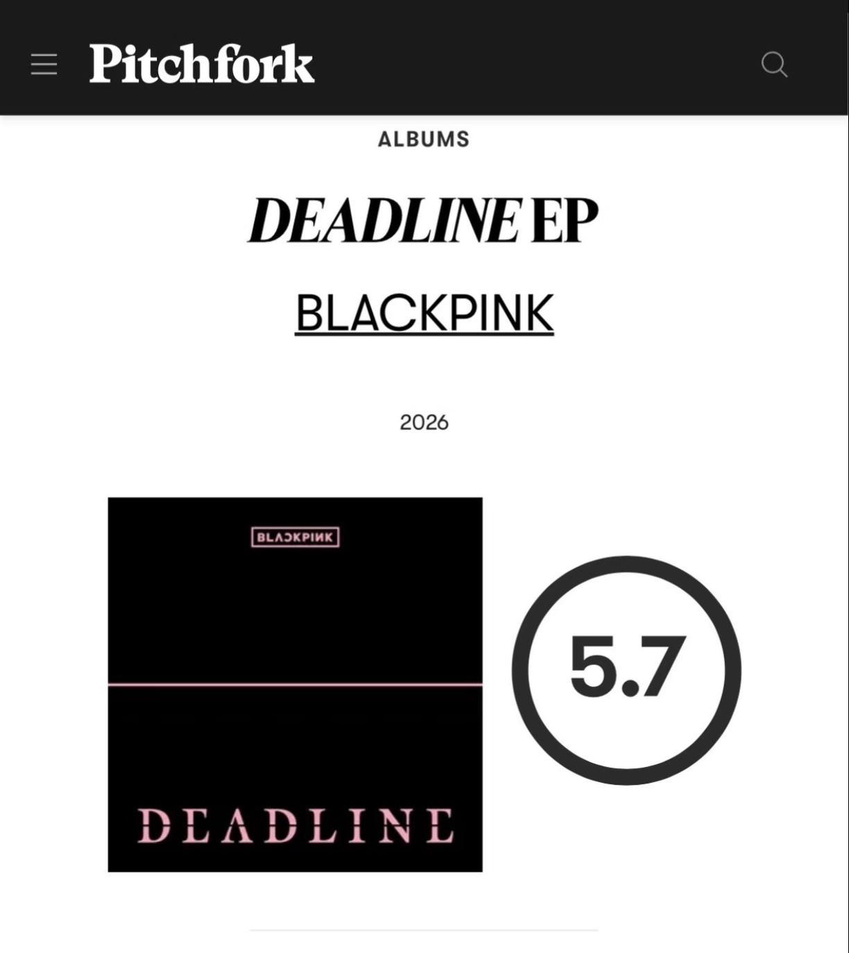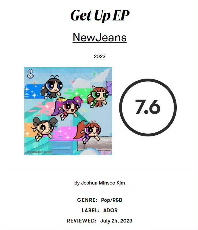 知名乐评平台Pitchfork最近一次对KPOP大热艺人的评分一览1️⃣newjeans 7.62️⃣red velvet 7.43️⃣f(x)7.34️⃣twice 7.35️⃣金珍妮Jennie 7.16️⃣BLACKPINK 5.77️⃣朴彩英5.58️⃣BTS 5.39️⃣Lisa 5.2
