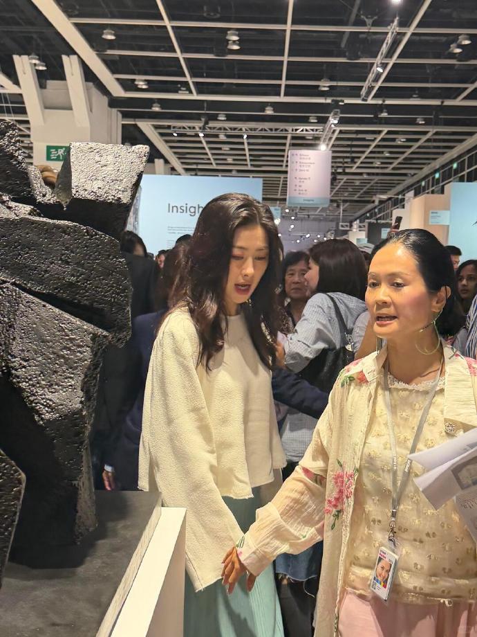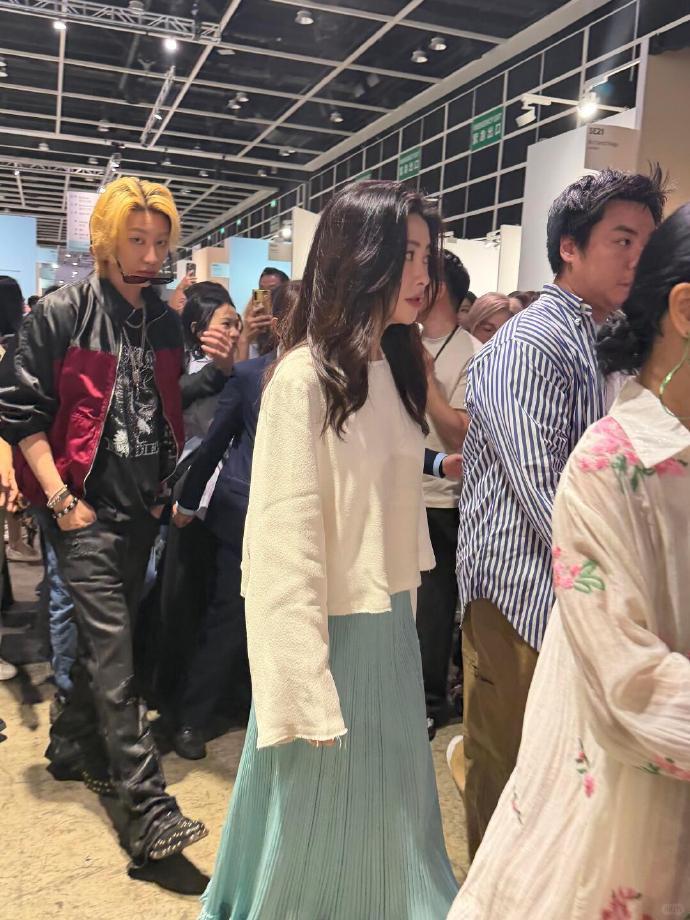 今天朱珠去看艺术展了,她这次搭配的像个迷人的仙女,看上去非常的迷人。 朱珠上身