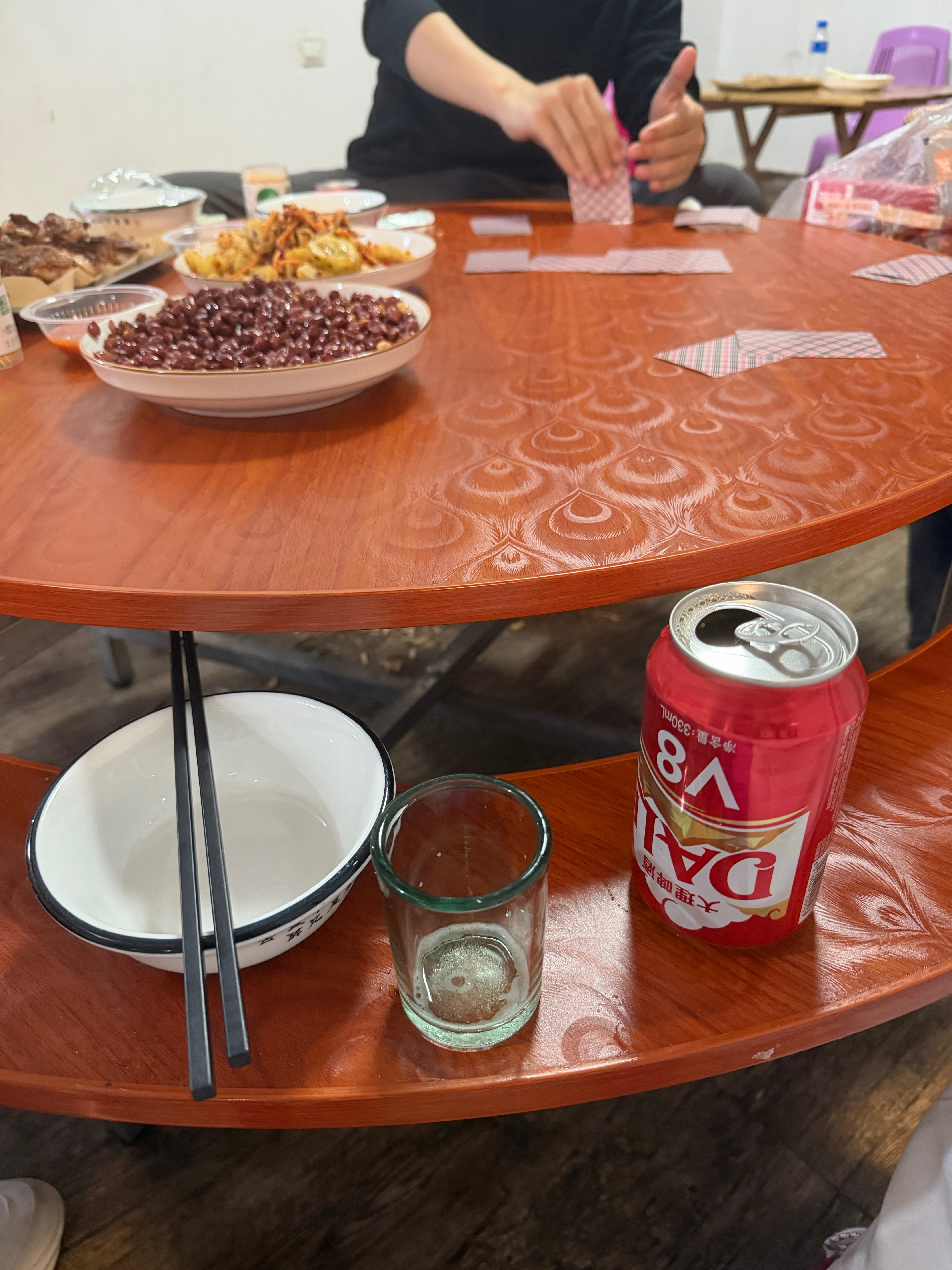 版纳的烧烤店桌子很棒唉~是这种两层的设计,正好下面放碗,上面放菜 普洱·普洱景迈山古茶林景区