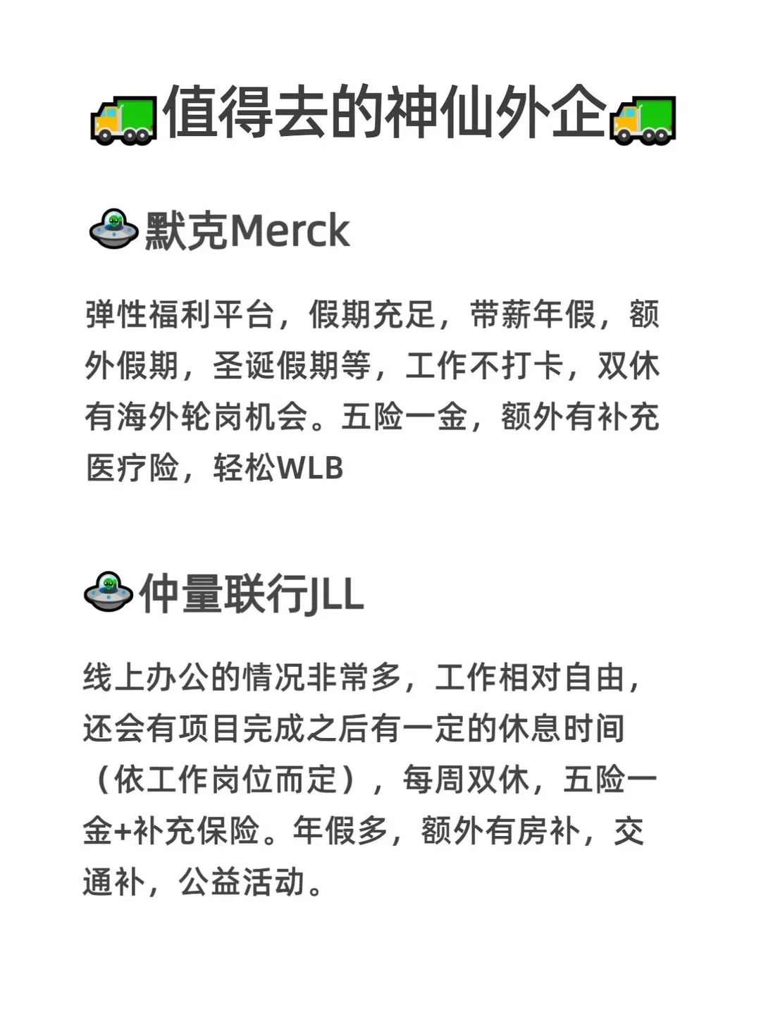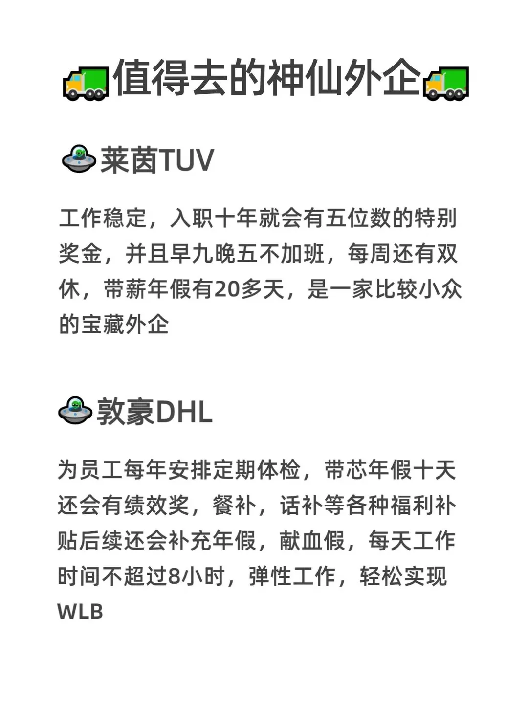 在众多外企赛道中,[微笑R]音乐类外企绝对算得上是低调又稀缺的存在,小众却藏着大惊喜。 ~ 不管是骨子里热爱音乐的宝子,还是专业对口的艺术生、音乐生,都能在这里找到适配自己的岗位[飞吻R] ~ ✨自带浓厚的艺术氛围,对女性格外友好,没有复杂的职场内耗[大笑R] ✨工作模式更灵活,格外注重wlb,不内卷 ✨年假10天起,[哇R]专属假期等福利也从不缺席 ~ 我在空闲时间整理好了外企的信息表,帮助宝子们消除信息差~ ~