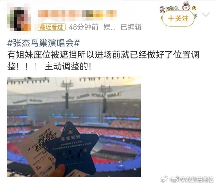 张杰张杰鸟巢演唱会主动更换视线遮挡区 张杰鸟巢演唱会 真正的在乎,是提前想到、默