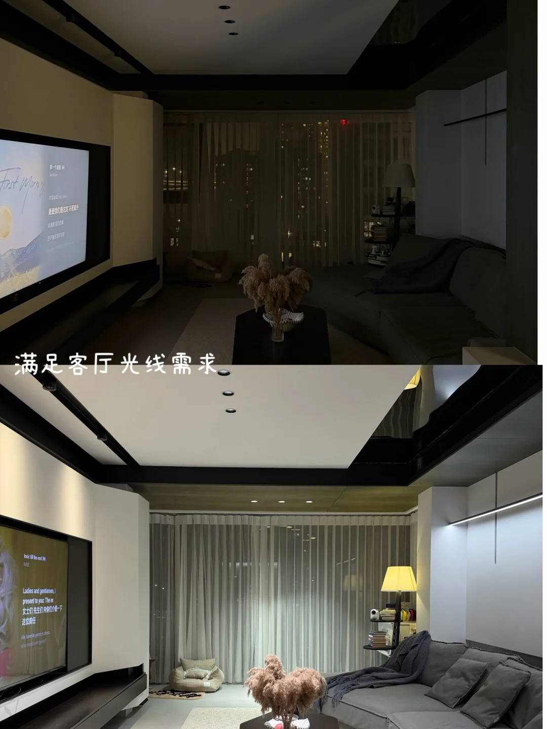 谁懂啊!装修后才发现,灯光真的很影响家的质感~ 之前踩过不少射灯的小坑,有的显指不高,拍出来脸有点发黄,家里的软装也显得没什么质感;有的光斑很明显,看着不舒服,孩子看书没多久就揉眼睛,我自己看久了也会觉得累。在线下线上看了好几款,终于遇到了Yeelight易来新升级的T4 Ultra筒射灯,感觉挺合心意的。 它的颜值我还挺喜欢的,选了黑杯款,装在吊顶上几乎看不出来,很和谐。深杯防眩的设计,平时抬头看灯也不会觉得晃眼,再也没有之前那种烦人的光斑和眩光,整个空间的光线都柔和了很多,无主灯的氛围感也更自然了。 RG0 级低蓝光的认证用着也挺安心,平时我在家看书、追剧,长时间在灯光下,眼睛也不会有明显的不适感,家里有老人小孩的话,用着也能更放心一些。 显色效果也超出了我的预期,开灯后家里的家具、绿植的颜色都很自然,能还原出本身的样子,不再是灰蒙蒙的感觉,连拍照片都不用特意调光线,随手一拍就挺有氛围的。 15W 的大功率对我家客厅来说也够用了,整个空间都能照得比较均匀。还有靠谱的售后质保,用起来也更踏实。 现在越来越觉得,灯光算是软装里性价比很高的一部分了,选对了,真的能让家里的感觉舒服不少。还在挑筒射灯的朋友,可以试试这款,整体体验还是挺不错的。