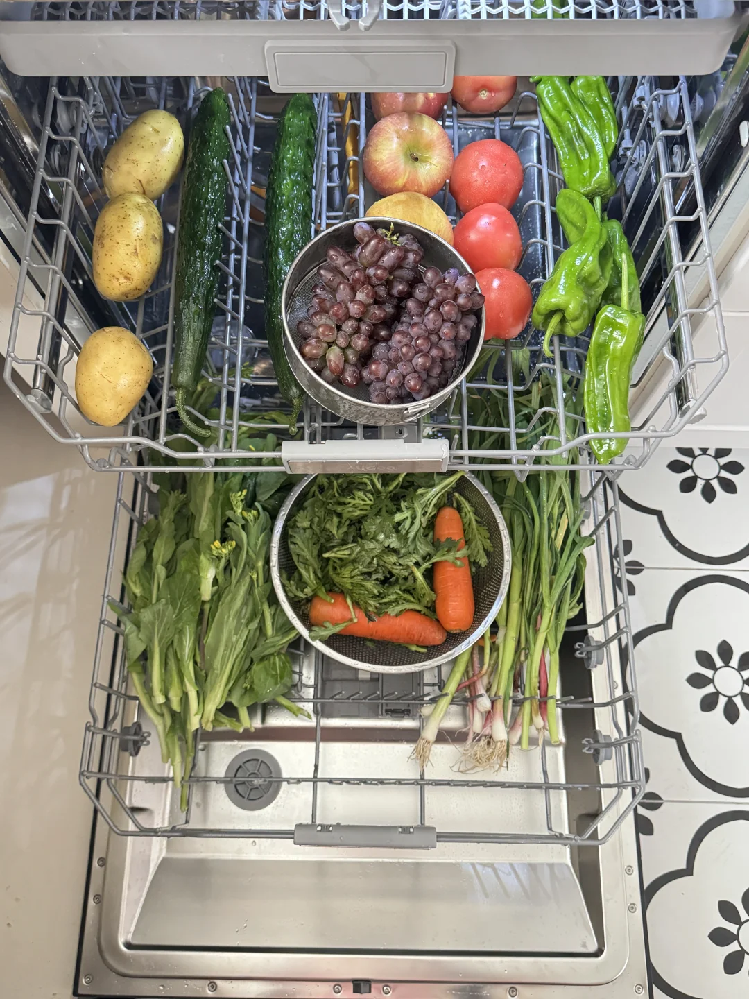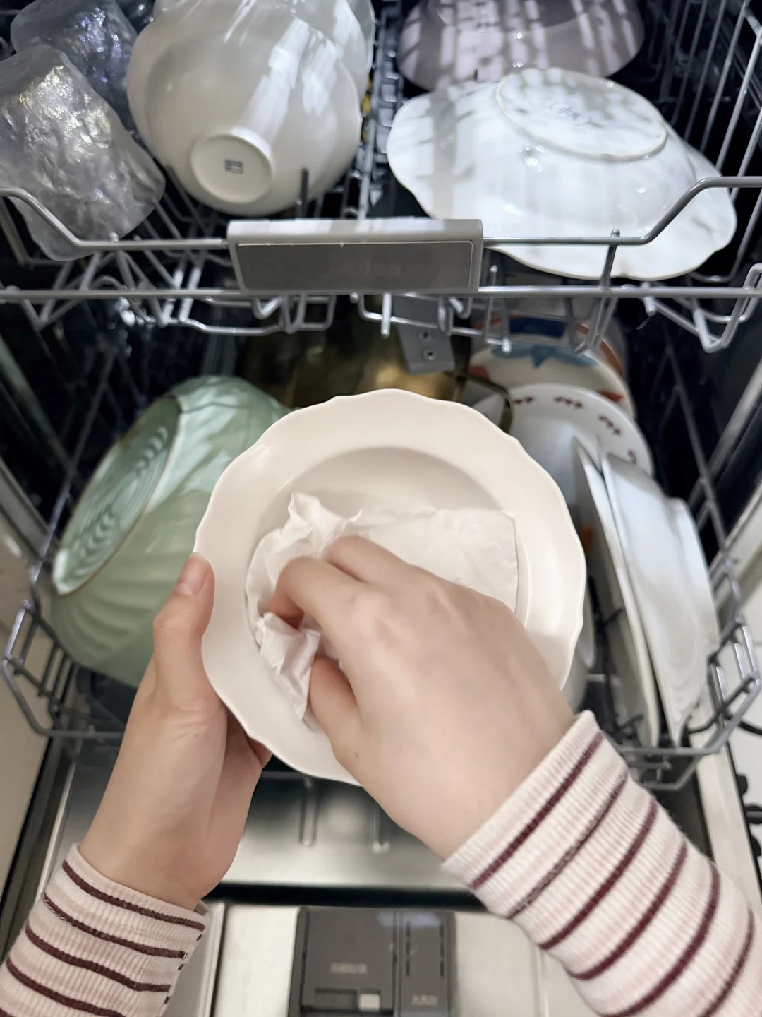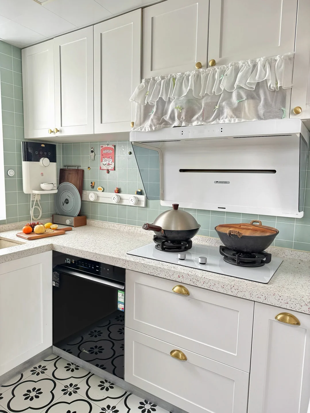 坐标上海,厨房面积3.7㎡,长2.37m,宽1.55m 做了L型橱柜,中间过道93cm 🟡厨房设计巧思 无中生有了个室内窗,把厨房变成了半开放式厨房,不仅增加互动性,而且让空间感更加丰富。 它不仅是一个小吧台,下方还可以储物,好看还实用。 🟤厨房空间设计 ◾️使用白色柜体,空间延展性高,吊柜、隔板增加储物能力 ◾️台面安装了大单槽台下盆,能放得下锅,洗刷清洁特别方便 ◾️预留管线机、洗碗机等电器孔位,提升生活便捷性 ◾️L型台面,围绕【洗、切、炒、盛、上菜】的动线布局,烹饪操作起来更加得心应手 我家厨房一直是老公在使用,他每次做完饭都打扫的很干净,当然也十分辛苦,尤其是家里来人聚餐,要清洗很多餐具碗筷。所以这次特地给他安排了台洗碗机,也是运气超级好的!(来接接好运气吧~) 之前装修的时候就和设计师说后面可能会购置一些嵌入的电器,需要留部分空间出来。刚好位置装了这台美的的这台小西梅洗碗机!(但是如果你们有需要嵌入的家电,一定要在装修前确认好家电的尺寸哈,尺寸图直接和商家拿就好了,再和装修的师傅沟通清楚就没问题了) 容量基本能一次装下所有碗筷和锅具。他烘干是105℃晶焰速干,烘干得很均匀,起码内壁和碗筷都是干燥的,不怕返潮,还有个笨蛋设计一键洗烘,不然平时我都不知道选标准洗还是强力洗,洗完的碗筷温温热热的,隔天打开也不会返潮闷味儿,老公已经把它当成了备用的储藏拉篮了,看网上说当消毒柜用的也有。清洗能力是洗碗机最不想提的一个优点了,这家伙确实比手洗干净,内部有安装万向喷淋臂,清洗角度会更多,因为他的喷臂上下左右都在转,都在摆动,就算有时候摆放不整齐也是照样冲洗得很干净。我们都直接用来清洗蔬菜瓜果,清洗后干净无泥沙,帮我老公省下很多做饭时间。 不得不说,洗碗机真是科技之光,节省下的时间可以好好休息啦~还有其他装修问题评论区见哦~🍑 小户型厨房厨房装修灵感库爱上我的小厨房开放式厨房厨房收纳厨房装修美的小西梅洗碗机洗碗机美的洗碗机小西梅嵌入式洗碗机厨房好物