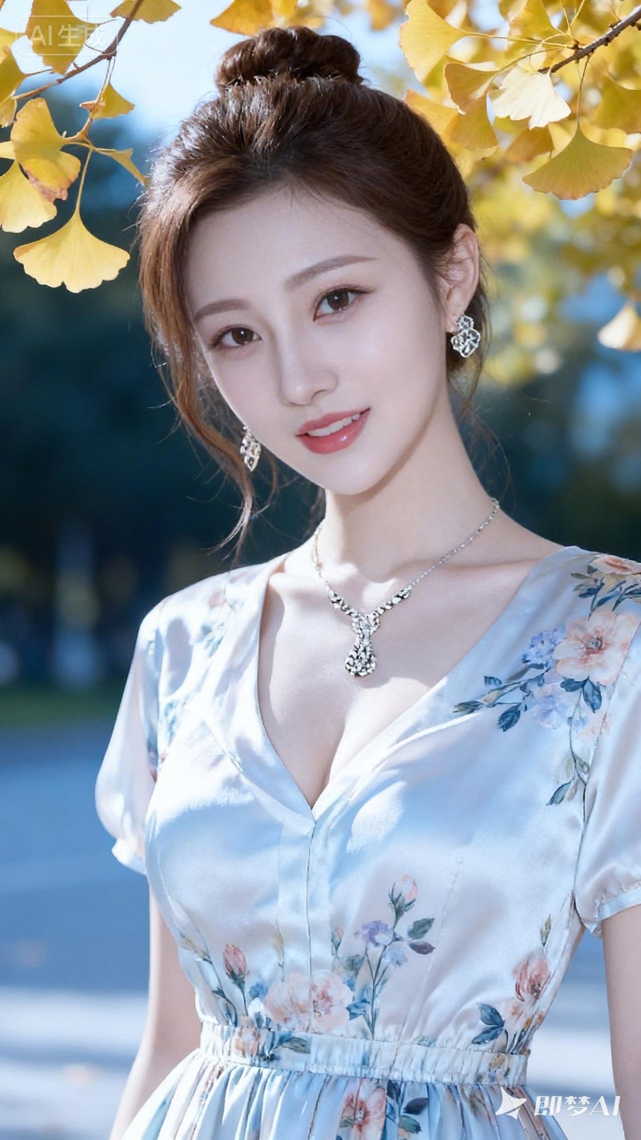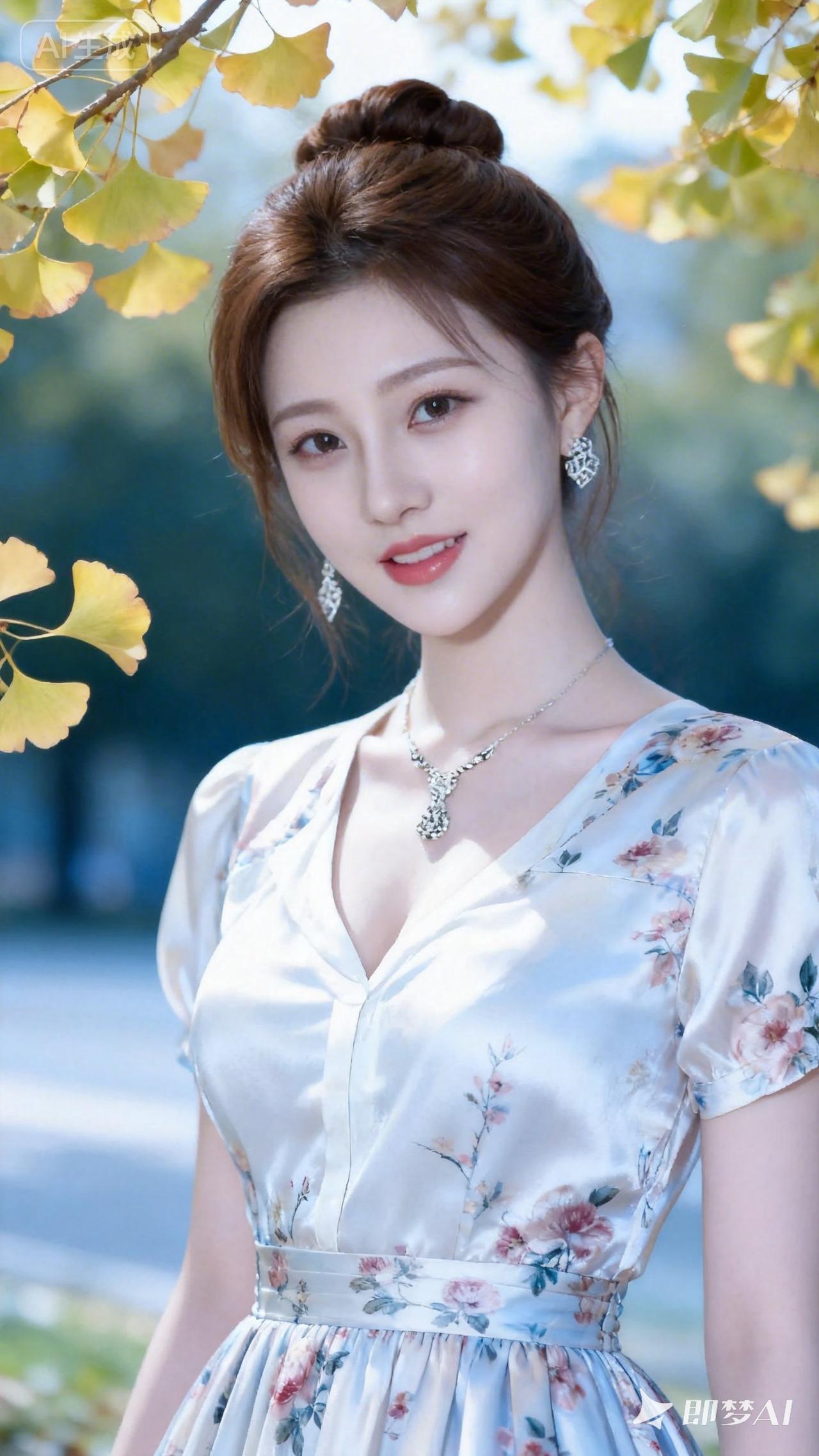 秋日暖阳下的优雅仙女,花裙与珠宝的完美搭配,尽显温柔与浪漫。