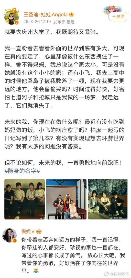 隐身的名字小演员告别文隐身的名字 少年组的告别文,字里行间带着青涩,也带着对未来的无限希望。成年组的回应稳重里藏着痛惜,这个callback,真的有一种“只道当时是寻常”的怅然。