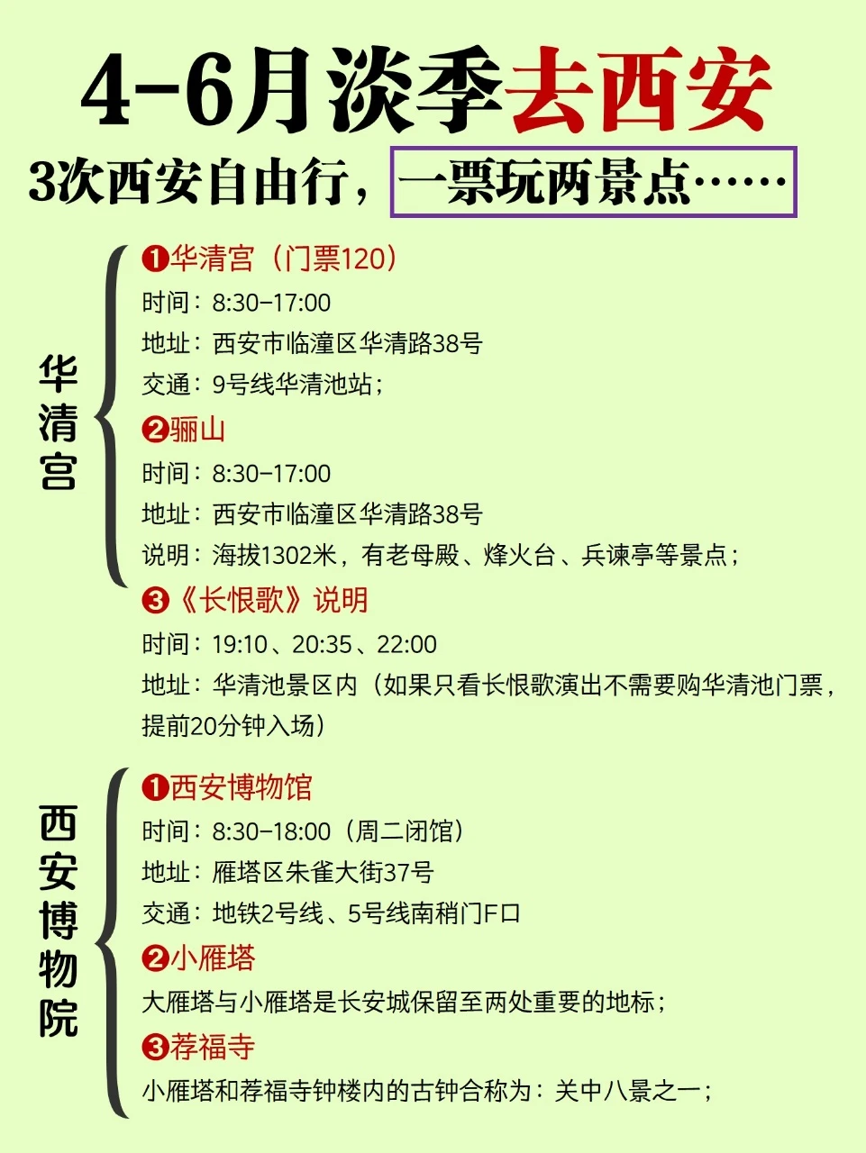 4-6月淡季去西安要知道的一票多景点景区