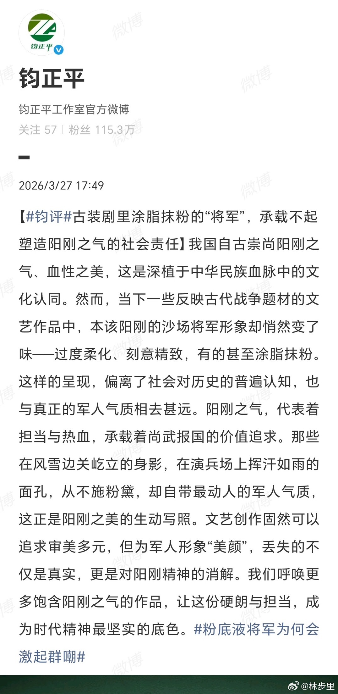 张凌赫粉丝被吐槽没文化了,来审判下钧正平评粉底液将军媒体评粉底液将军