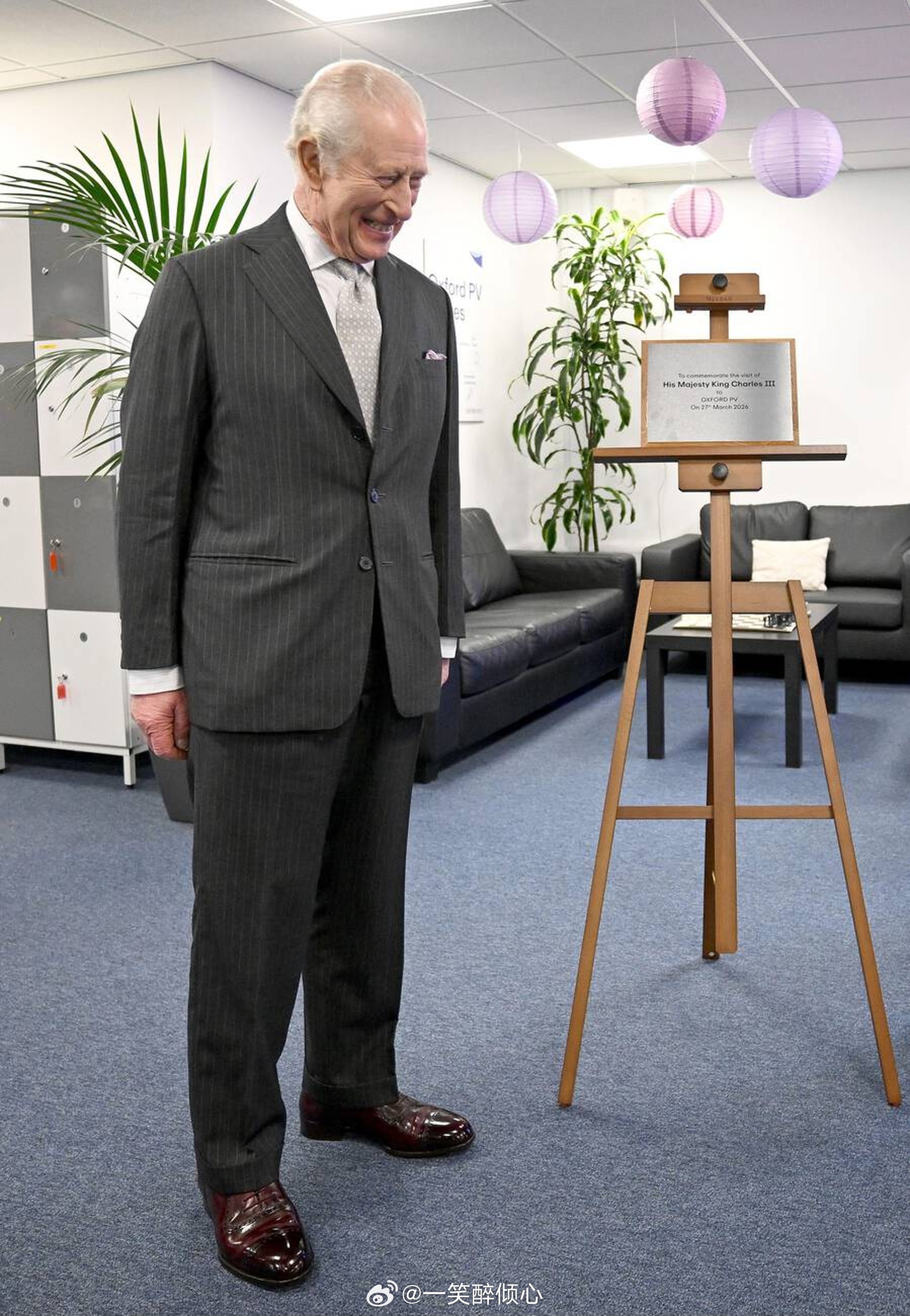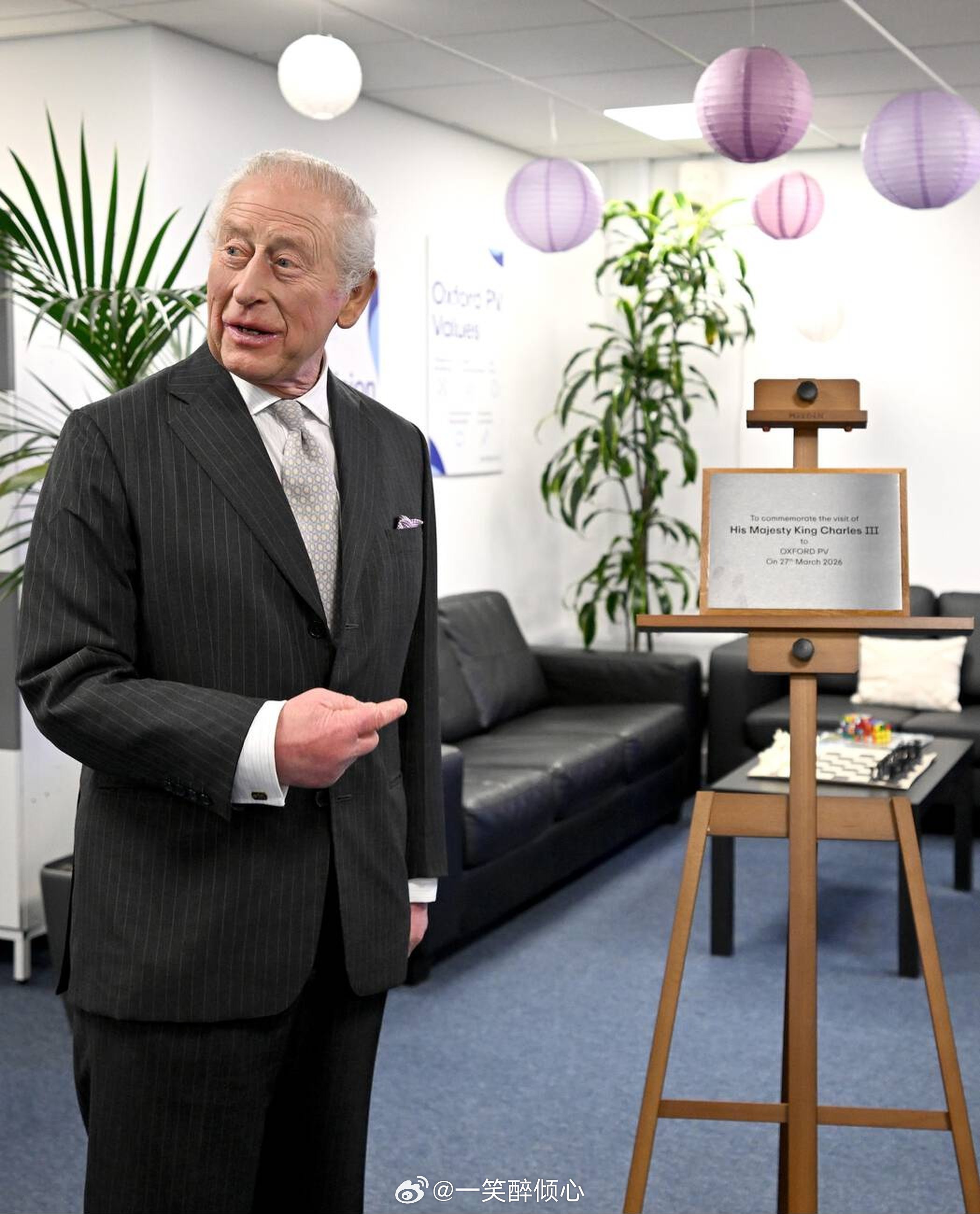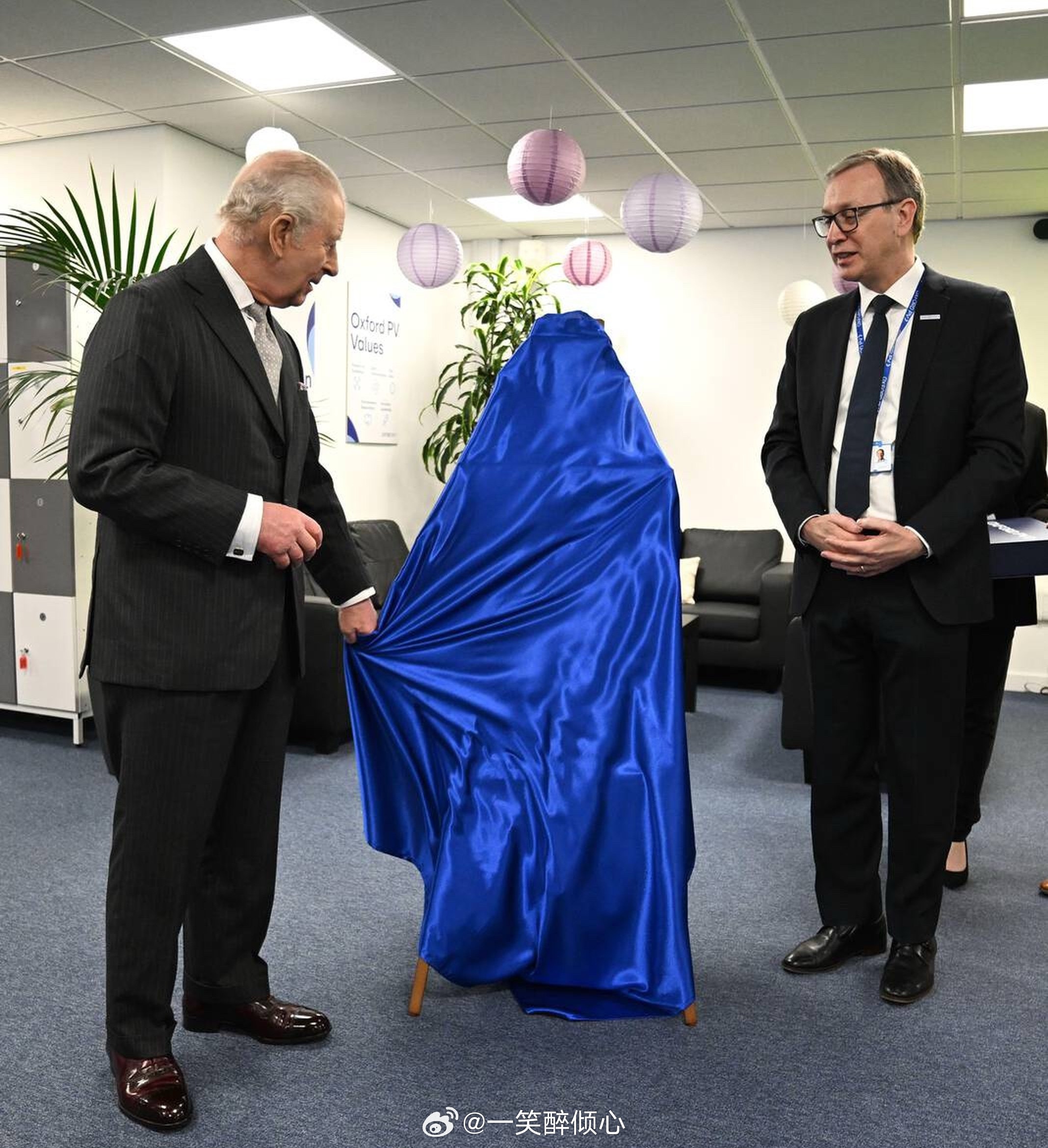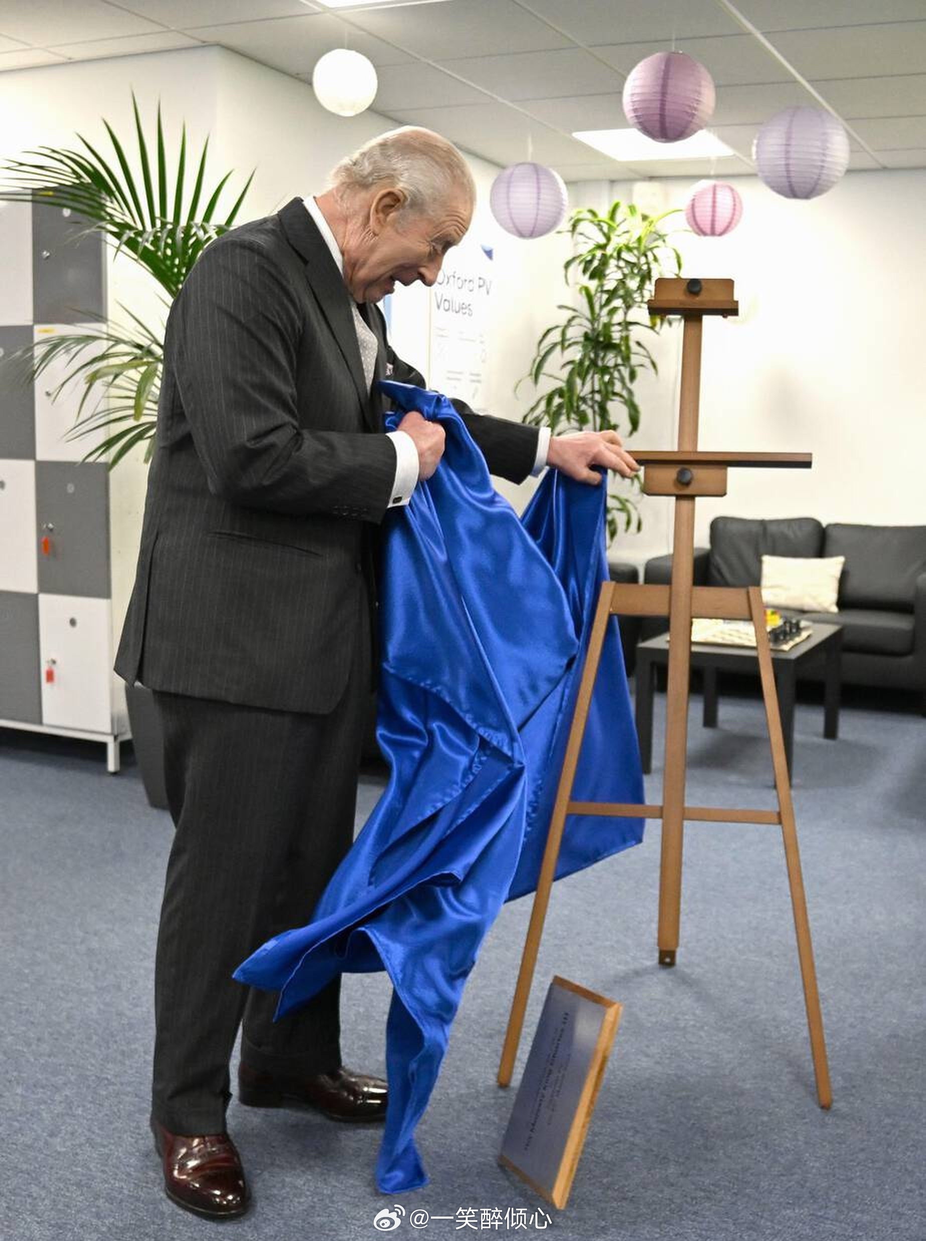 英国王室 今天查尔斯三世在牛津郡访问新能源企业期间揭牌匾,结果不小心把牌匾从画