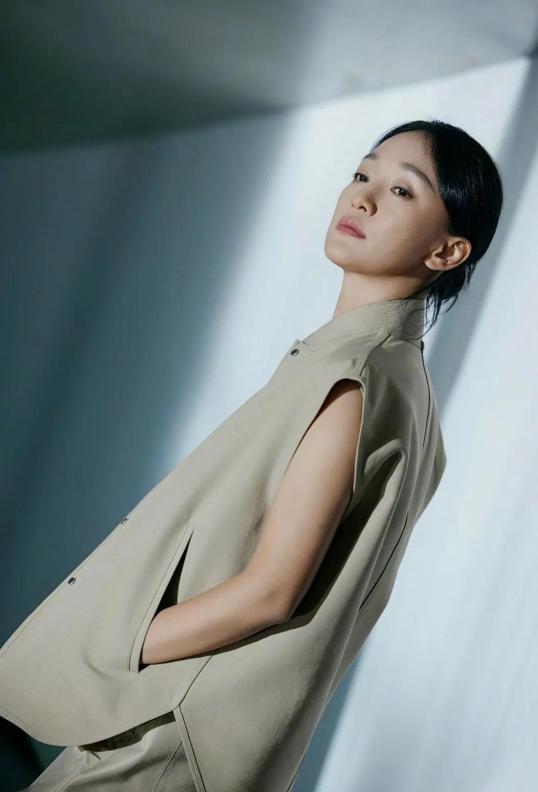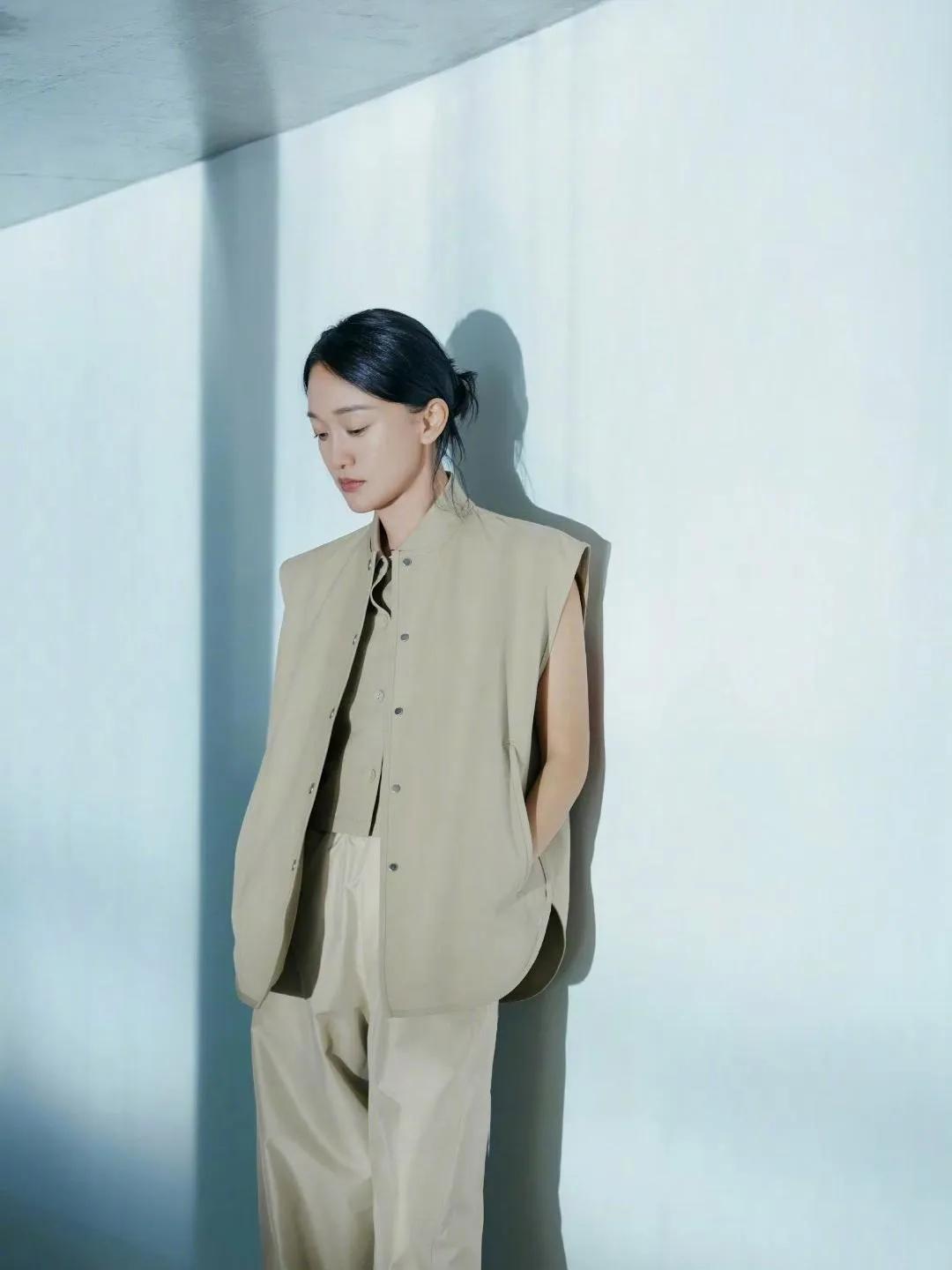 周迅棕系穿搭太绝了 周迅这组棕系穿搭真的绝!✨ 简约无袖套装+同色系阔腿裤,