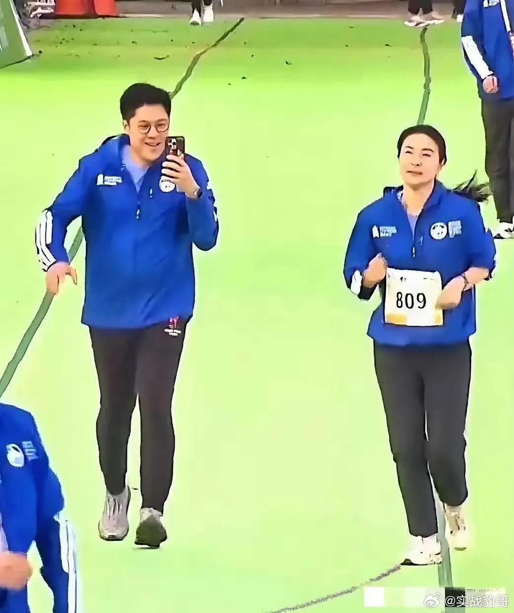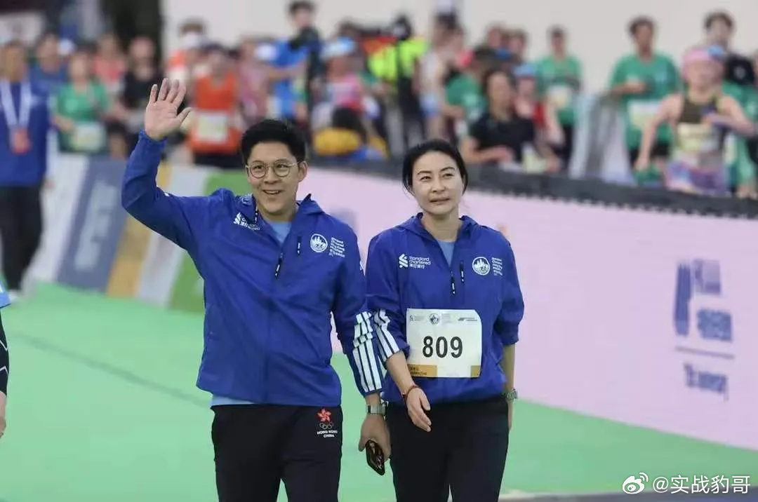 夫妻俩合体参加香港一年一度的马拉松赛事,郭晶晶参赛,霍启刚陪跑,快到终点了,霍启刚竟然一点也不关注成绩,而是立马拿出手机着急给老婆拍照。