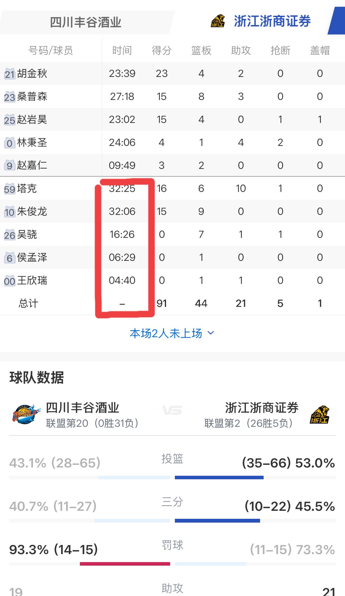 险胜30连败四川!主力打32分钟新人没机会,王博非得走不寻常路? 昨晚广厦打30连败的四川,本来就是手拿把攥的比赛,早该拉开分差让主力歇着,给新人练练手。 结果打得那叫一个揪心,比分一直咬着,四川还好几次反超,看得人直犯嘀咕:卫冕冠军别真给连败的四川送首胜吧。 没办法只能死咬着主力用,塔克、朱俊龙全都打了32分钟。 再看年轻球员,侯孟泽就打6分钟,王欣瑞4分钟,跟没上场没啥区别。 对面是联盟垫底的四川,又不是争冠强敌,明明能早点打花比赛换替补新人,非要磕磕绊绊耗到最后。 王博非得走不寻常路,好好的棋非要下得拧巴。 这么用人真没道理,赢了场面,输了格局。 主力白耗体力,常规赛赛程这么密,体能全浪费在这种比赛上。 本该是练新人的最佳场次,结果年轻人还是没机会,赢球了又咋样,一点额外好处没捞着。 强队打弱队,拼的不是险胜,是会算账。真等到季后赛体能顶不住,那时候再后悔可就晚了。 打个垫底队都这么保守,主力往死里用,新人不给机会,这安排真的说不过去。 大家说说,打这种球队该不该轮休主力、多给新人上场时间? 浙江广厦 王博 CBA联赛