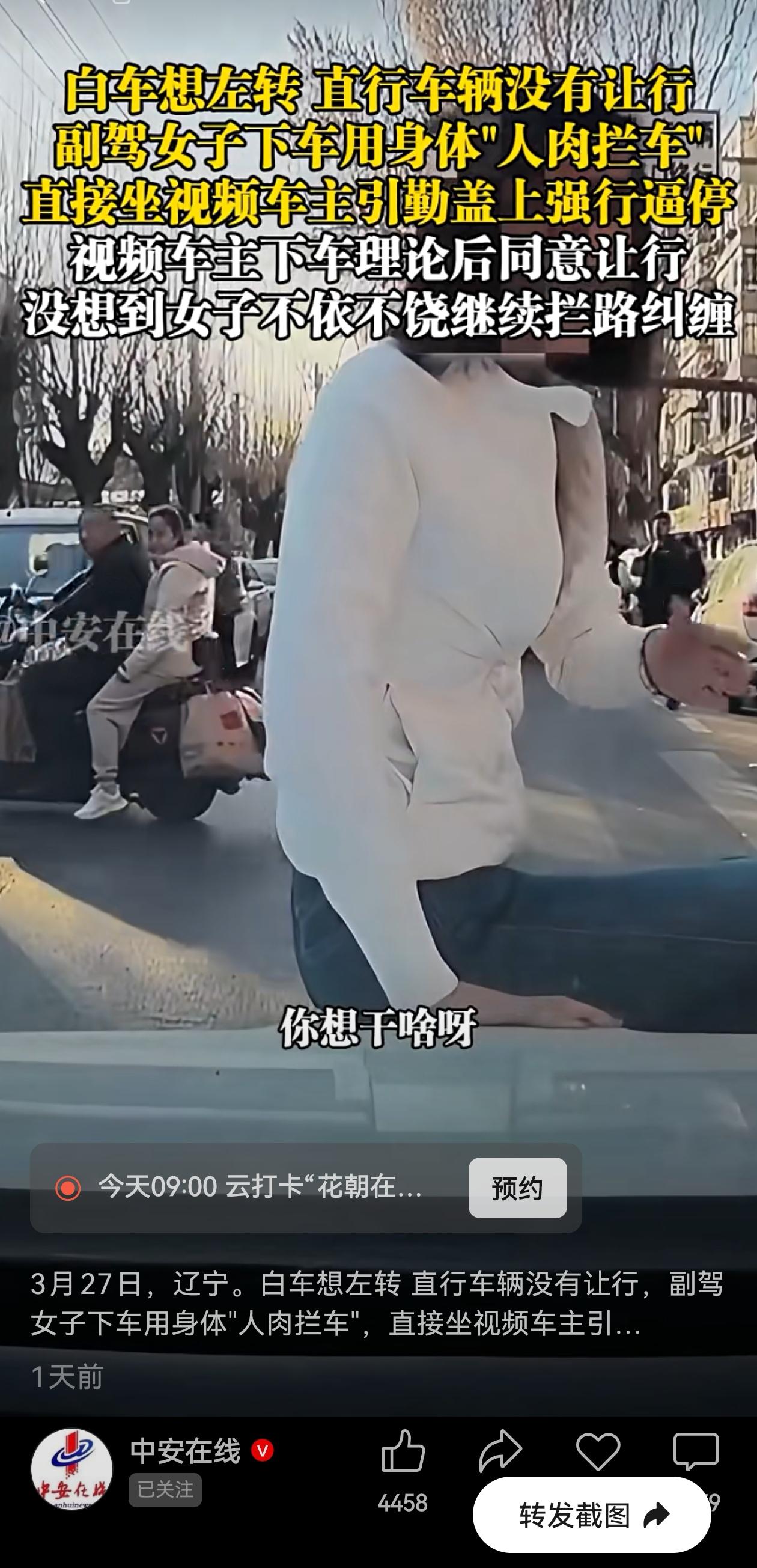 吃相有点难看啦!3月27日,辽宁沈阳街头的这起“人肉拦车”事件,太奇葩了! 白车想左转,直行车没让,这本就是再正常不过的路权规则。可白车副驾女子一下车,直接拿身体当路障,甚至还坐上人家引擎盖,硬是把简单的让行闹成了街头闹剧。 说到底,不就是想加个塞儿吗?好好说话不会吗?摇下车窗,客气一句“麻烦让一下”,多数人抬手的事儿。非要摆出一副“全世界都欠我”的架势,用撒泼的方式逼人就范。事儿是办成了,可这吃相,实在难看。 明明客客气气就能沟通,非要把自己搞成受害者模样。这种人往往还觉得自己特有理:我打了转向灯你就得让,我着急你就得给我方便。他们把客气当应该,把别人的善意当软弱。 最让人无语的是,人家车主最后都让步了,她还不依不饶,非要争个“赢”才罢休! 好好跟人说一句“师傅,麻烦让一下”,人家心里舒服,脚下一刹车的事儿。何必非要把自己弄得跟“马路判官”似的,又拦车又坐引擎盖,面子有了?里子赢了? 说白了,这就是典型的“会哭的孩子有奶吃”吗?总觉得谁嗓门大、谁姿态狠,谁就占理吗?可是今天你拦住了这辆车,明天别人也用这套对付你,这路上还能消停吗? 将心比心,多大事儿啊。客气不是软弱,也别把撒泼当本事啦!是给自己留体面,也是给别人体面!好好说话不好吗? 信息来源:中安在线