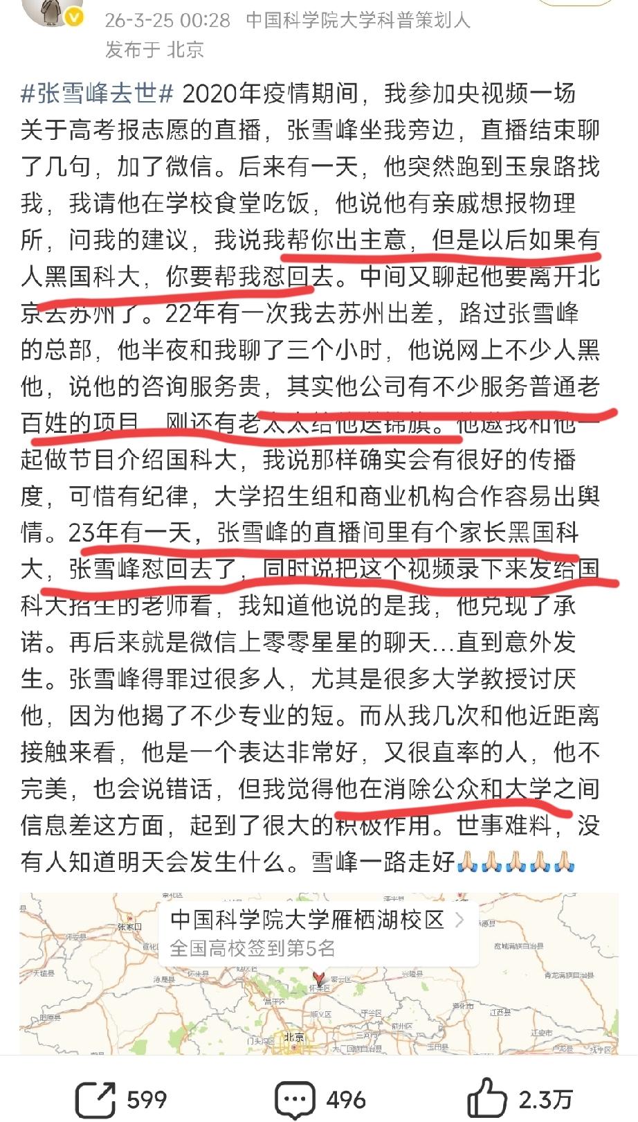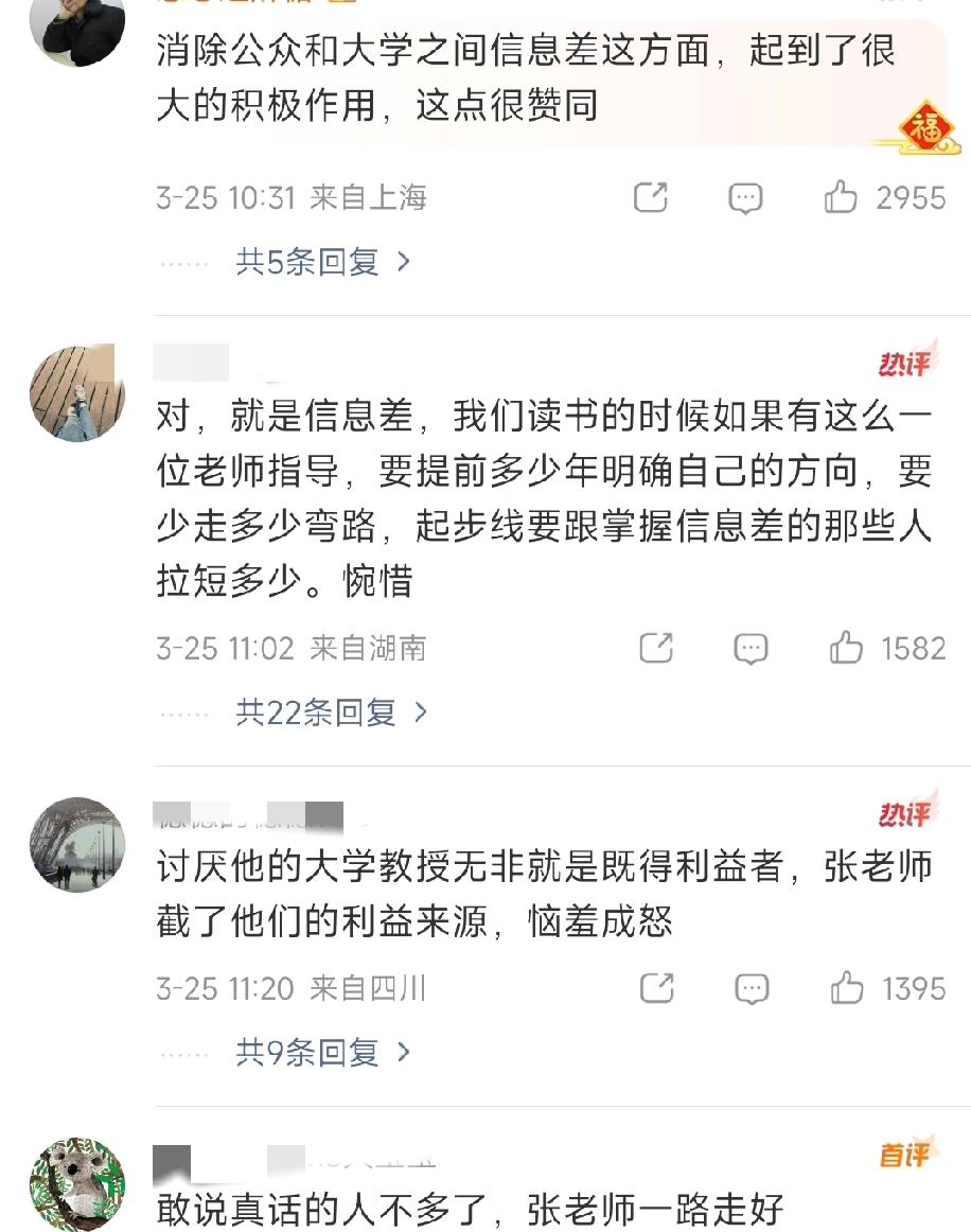 难得看到一位大学老师,对张雪峰有如此正面的评价。 在这个老师的内容里,我们看到了张雪峰对朋友的重情重义,也看到了他不为人知的委屈心酸。 他确实不完美,有时候在直播间有点小张狂,也因此得罪了不少有地位的大学教授。 但他在早些年,确实用专业知识,帮助了很多普通人消除了和大学各专业的信息差。 有个传媒大学毕业的大v博主说,非常赞同张雪峰对新闻学专业的结论。 同新闻系毕业的贝贝也想说,后悔考大学那一年没有认识张雪峰老师!