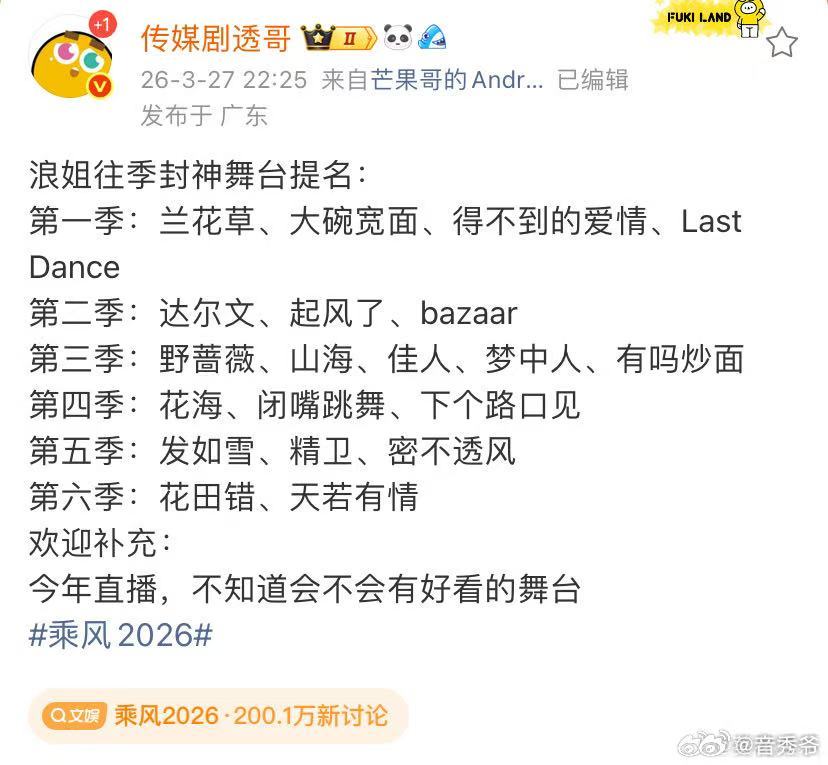 历届浪姐封神舞台 又一年乘风远航即将启程,《乘风2026》官宣引爆全网热议,大家