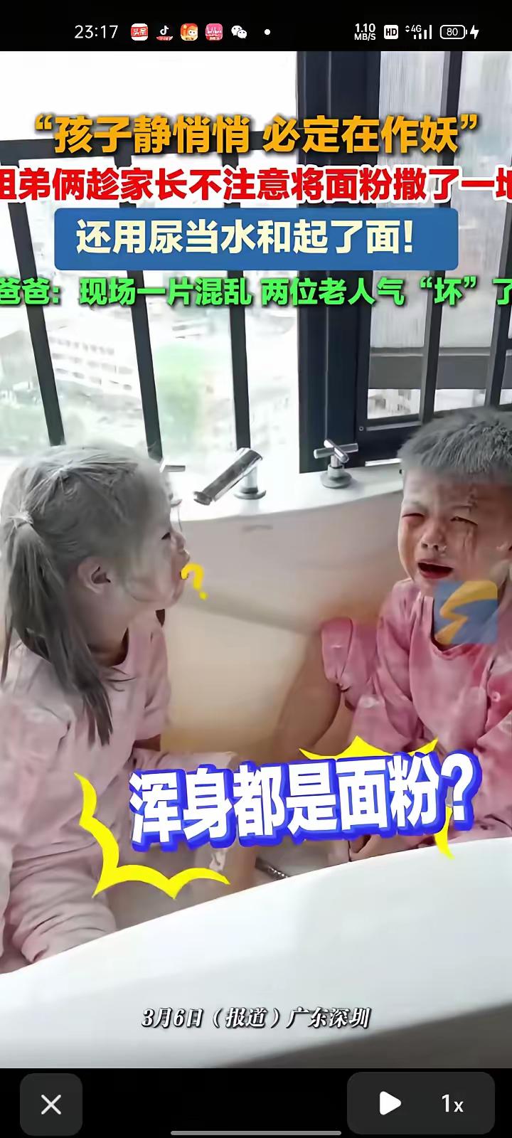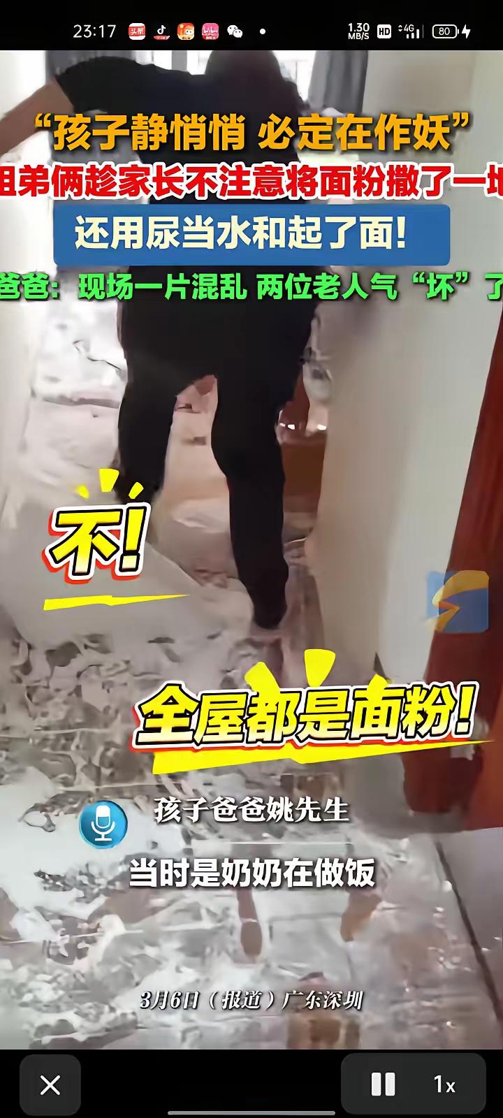 3月6日,广东深圳。孩子爸爸姚先生称,两孩子玩面粉把卧室变成“雪场”,当时孩子奶奶在做饭,姥姥在收拾另一个房间,两孩子平时一直自己玩,没过多关注,等老人发现后已经气坏了,这分明是浪费粮食。 3月6号,广东深圳发生了一件特别真实的家庭小事,刷爆了社交平台,相信很多有娃的家庭都能共情。孩子爸爸姚先生,当天分享了家里的“混乱现场”,语气里满是无奈,又带着点哭笑不得。 事情其实很简单,姚先生家有两个孩子,平时就比较调皮,大多时候都是自己玩,家里老人也没太多精力一直盯着。 当天下午,孩子奶奶在厨房忙着做饭,姥姥则在另一个房间收拾家务,两人都没顾上看孩子,就这么一会儿功夫,两个孩子就“闯祸”了,等老人忙完手头的事,推开卧室门的那一刻,直接就气坏了。 好好的卧室,被两个孩子造得不成样子,面粉撒得满地都是,连床铺、床头柜上都盖了一层厚厚的白,一眼看过去,活像个小型“雪场”。 两个孩子浑身都是面粉,头发上、脸上、衣服上全是白花花的,还在“雪场”里互相追逐打闹,完全没意识到自己做错了。 姚先生说,家里的面粉是老人特意准备的,平时用来包饺子、做面食,都是省着用的,结果一下子被两个孩子浪费了大半,老人本身就特别节俭,见不得浪费粮食,看到这一幕,又气又心疼,嘴里不停念叨着“这分明是浪费粮食”。 其实说句实在的,这事真没法过多指责孩子,小孩子好奇心强,动手能力也旺盛,看到面粉这种能随意摆弄的东西,自然忍不住想玩,他们根本不懂什么叫浪费,只觉得好玩新奇。 但反过来想,老人的生气也完全能理解,老一辈人大多吃过苦,深知粮食来之不易,一粒米一袋面,都是辛苦换来的,看着好好的面粉被糟蹋,心里肯定不好受。 姚先生也说,事后他和家人没有严厉批评孩子,而是耐心引导他们,告诉他们粮食的珍贵,让他们知道乱玩面粉不仅浪费粮食,还会给家人增加清理的负担,两个孩子也似懂非懂地点了点头,知道自己做错了。 其实这就是一场充满生活气息的小闹剧,没有谁对谁错,只是立场不同而已,现在很多孩子从小生活条件好,没体会过缺粮的日子,难免不会珍惜粮食。 这也提醒我们做家长的,平时要多给孩子灌输节约粮食的观念,不用刻意说教,在生活点滴中引导就好,比如吃饭时让孩子光盘,告诉他们粮食是怎么来的。 相信很多家长都有过类似的经历,孩子静悄悄,必定在作妖,虽然收拾起来很头疼,但看着孩子天真的样子,又气不起来。 这场小小的面粉风波,不仅展现了孩子的童真,也让我们看到了家庭教育里的小细节,包容孩子天性的同时,做好正向引导,才是最好的教育。