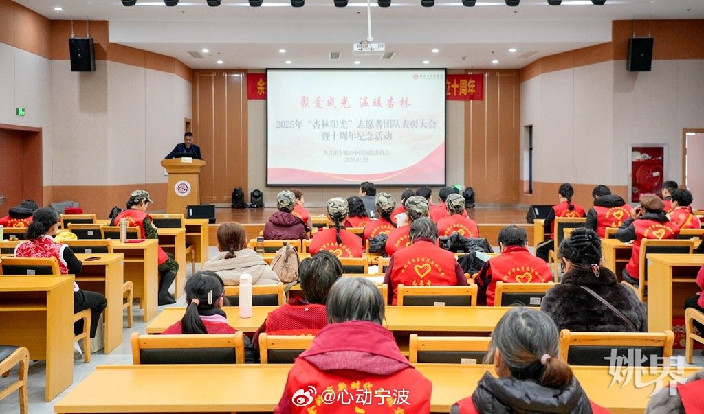 余姚杏林阳光志工队十年坚守温暖就医群众 近日,余姚市中医医院杏林阳光志工队举行十周年表彰大会,回顾十年暖心服务,表彰优秀志愿者。该志工队成立于2016年,十年无休,为患者提供就医指引、应急救助、财物归还等暖心服务,用点滴行动温暖就医群众。