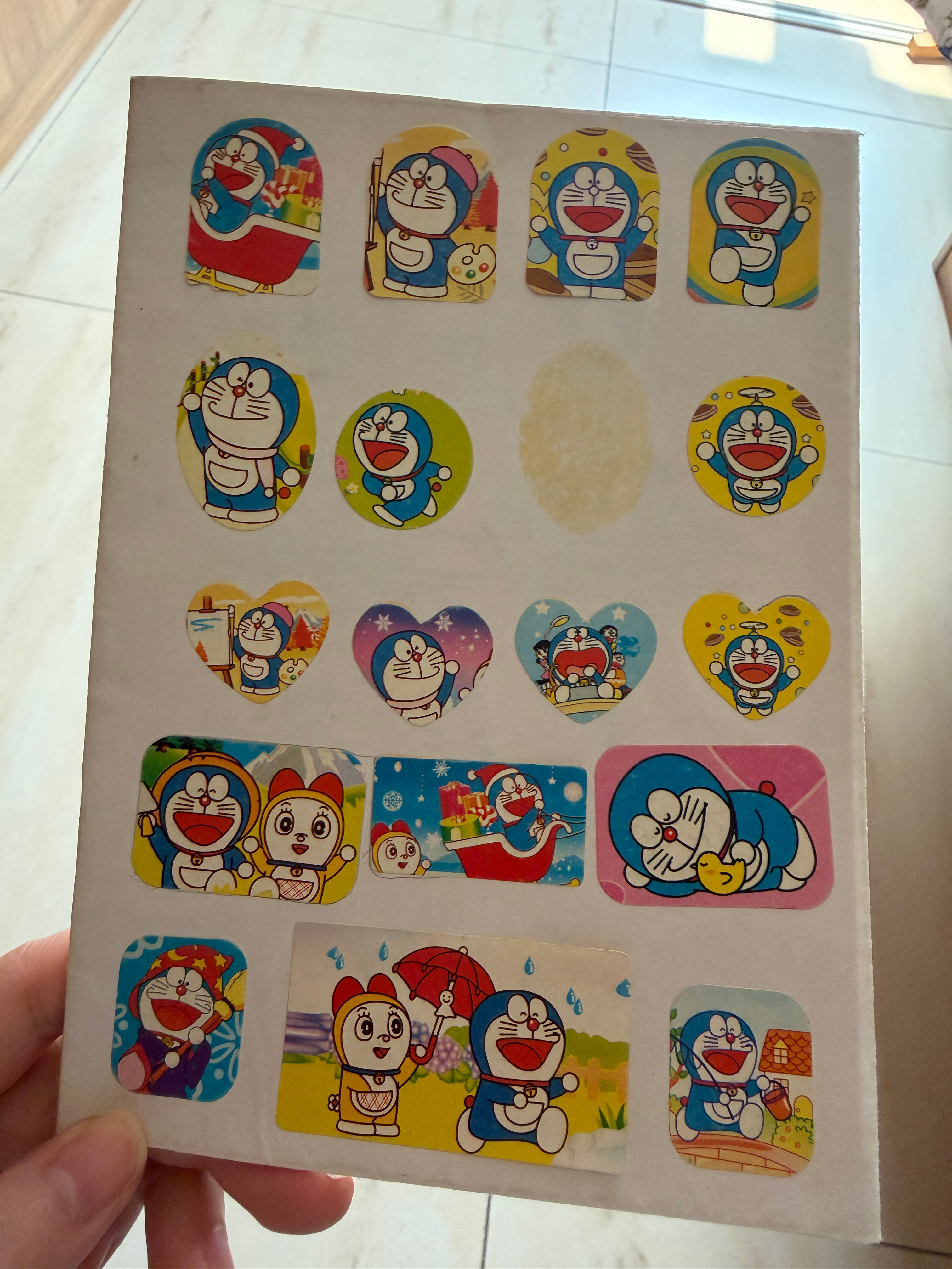 今天收拾东西发现了我小时候自己DIY的本,贴满了哆啦A梦小贴画,小时候就喜欢哆啦A梦,所以现在叫哆啦美佳