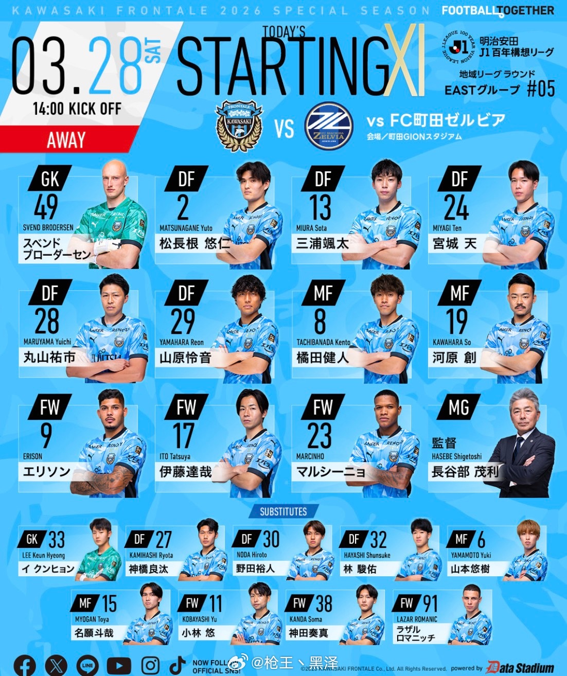 周六001 町田泽维vs川崎前锋风向:让负温度:1-1 0-1 1-2