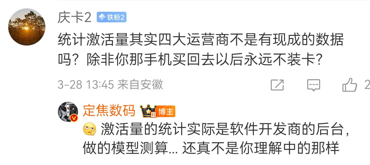 别再被手机销量数据骗了! 很多人纠结:看手机卖得好不好,到底看出货量还是激活量? 其实国际机构的出货量最准,是厂商发给渠道的数量,误差才1%左右,基本没水分。 而国内常说的激活量,是软件后台模型算出来的,和真实销量差15%-20%,水分可不小。 别以为运营商有装卡数据就能算准,激活量根本不是那么统计的,全是模型测算出来的。 (来自图中博主) 冷知识:小米官方财报引用的数据来源正是出货量,机构是Omdia,也就是以前的Canalys。常见的比较权威的机构还有IDC。