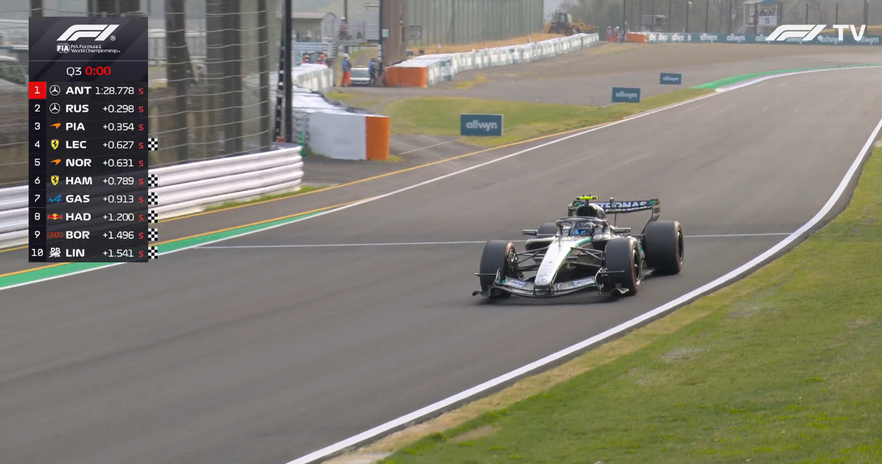 安东内利1:28.778夺得日本大奖赛杆位,连续两站夺杆!领先队友拉塞尔0.29