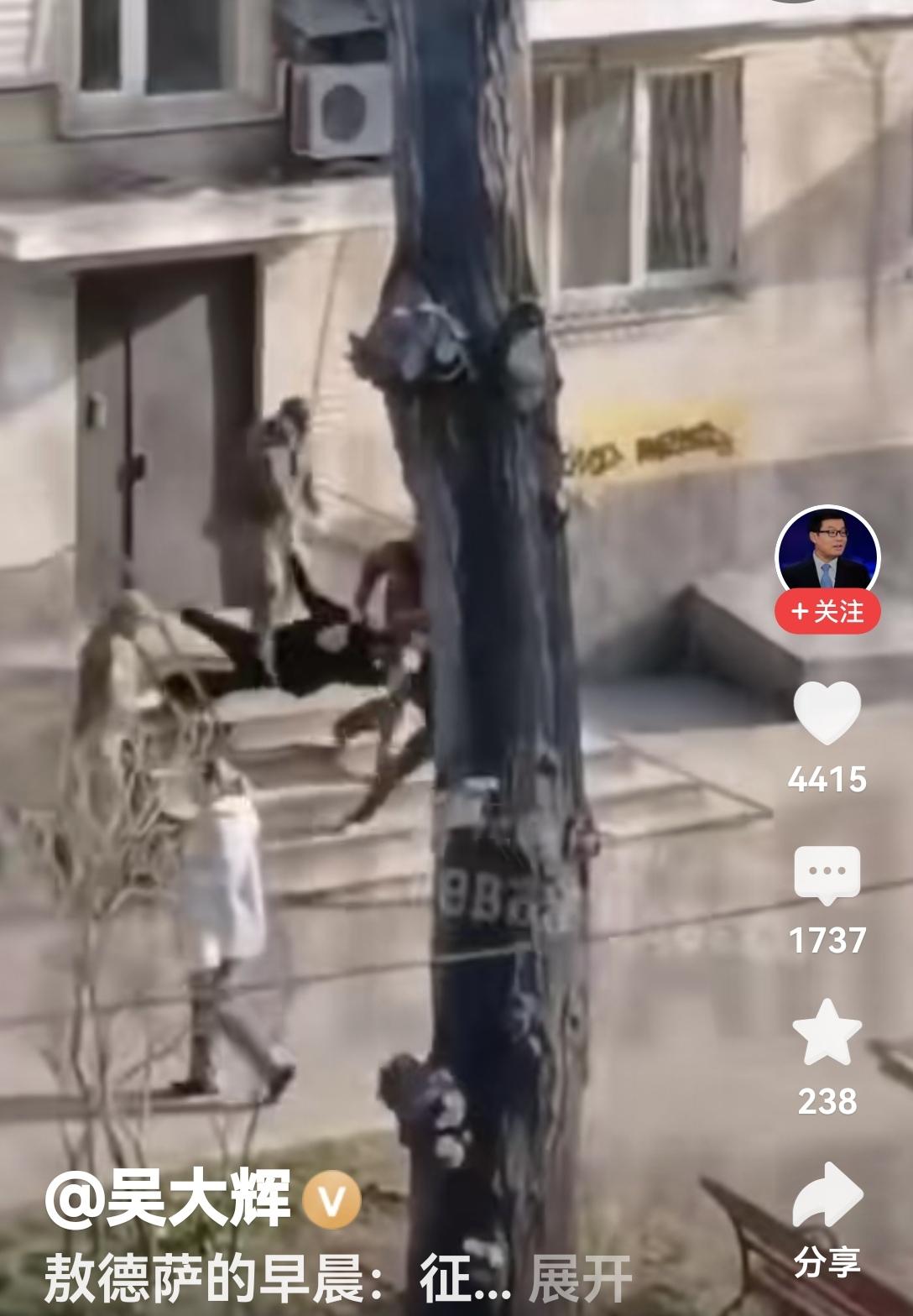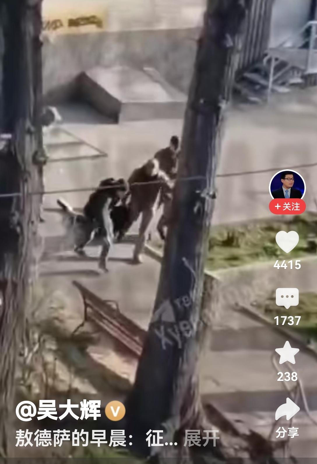 难以置信 刷到吴大辉教授来自乌克兰敖德萨的一段视频,内容是征兵办的人征兵的现场画面。 一名男子,被数人控制后,抓着双臂从居民楼门口拖出来,尽管男子奋力挣扎着,并用乌克兰语高声呼喊着,但还是被征兵办的人塞进了停在门口不远处的车中。 很难想象,乌克兰在节节胜利中不断的收复失地,后方的征兵却如此困难。 (吴大辉教授 俄罗斯问题专家,清华大学国际关系学系教授;若涉侵权,联系即删)