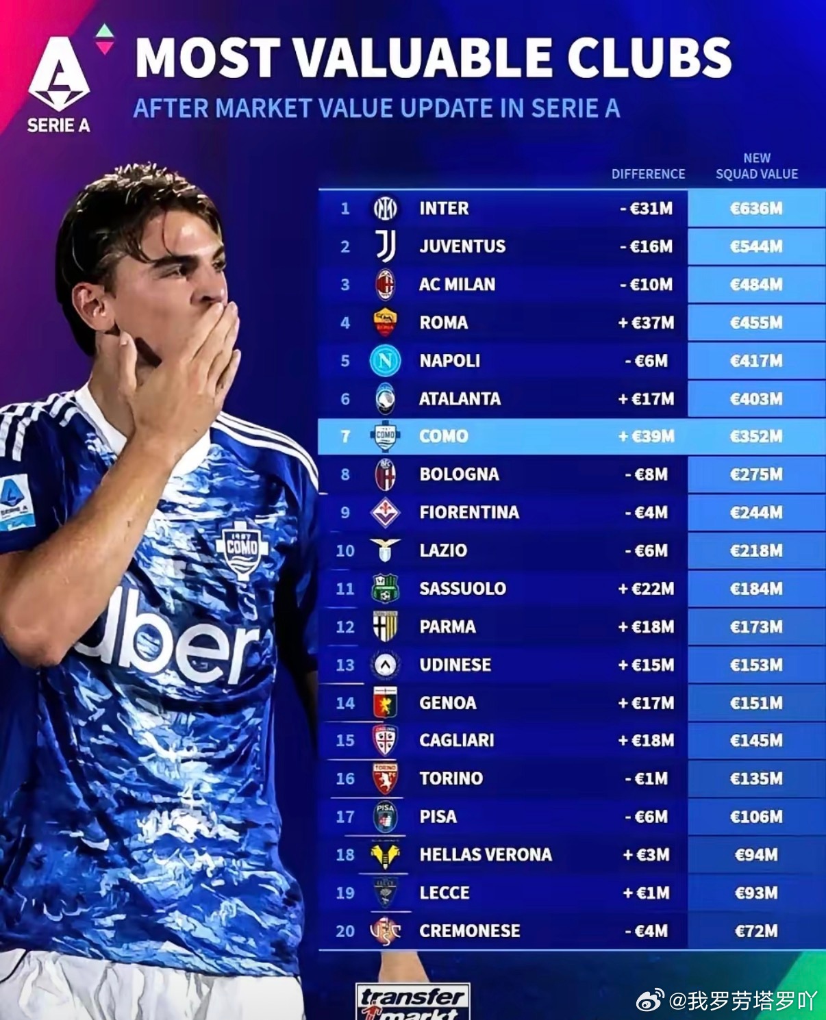 国际米兰 意甲身价榜单再度更新,国际米兰依旧稳坐榜首之位!据德国转会市场的最新数据披露,国际米兰全队总身价高达6.36亿欧元,持续领跑意甲联赛。这一数字,相较于排名第二的尤文图斯,整整高出了9200万欧元,更是将AC米兰远远甩在身后,差距达到了1.52亿欧元之巨。尽管巴斯托尼、巴雷拉等球员的身价略有下滑,但国际米兰的阵容深度与实力底蕴依旧不容小觑。劳塔罗以8500万欧元的身价屹立不倒,稳居意甲身价榜首。与此同时,年轻才俊比塞克、埃斯波西托的身价却在不断攀升,国际米兰的新老交替策略实施得有条不紊。这般操作,方显真正的硬实力风范。国际米兰意甲称雄 如此领先优势,短期内恐怕无人能够撼动其地位。